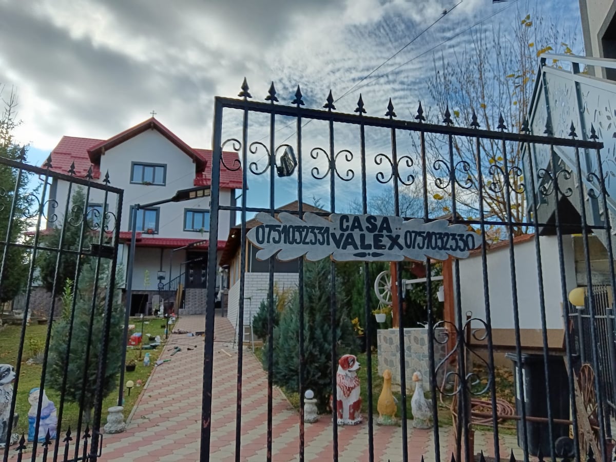 Relaxează-te cu întreaga familie în această locuință liniștită. Vă punem la dispoziție 7 camere, 5 duble și 2 triple, majoritatea cu baie proprie, 2 livinguri, bucătărie complet utilată,zona de joacă pt copii cu masa de 5 minijocuri, jocuri de dartz și mini handbal la exterior, foișor închis cu loc de grătar și zona de terasă unde se poate servi masa. Parcare liberă la proprietate, fără proprietari în locație