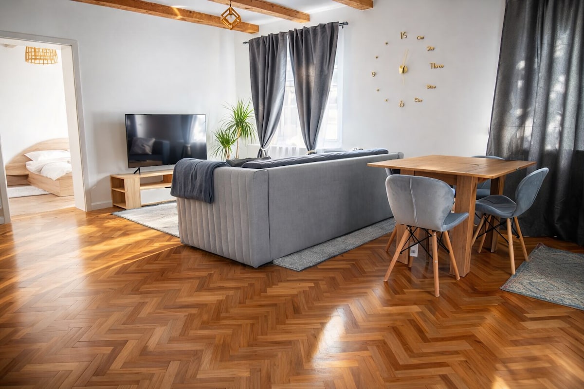 旧市街にある快適で静かなキングサイズのアパート