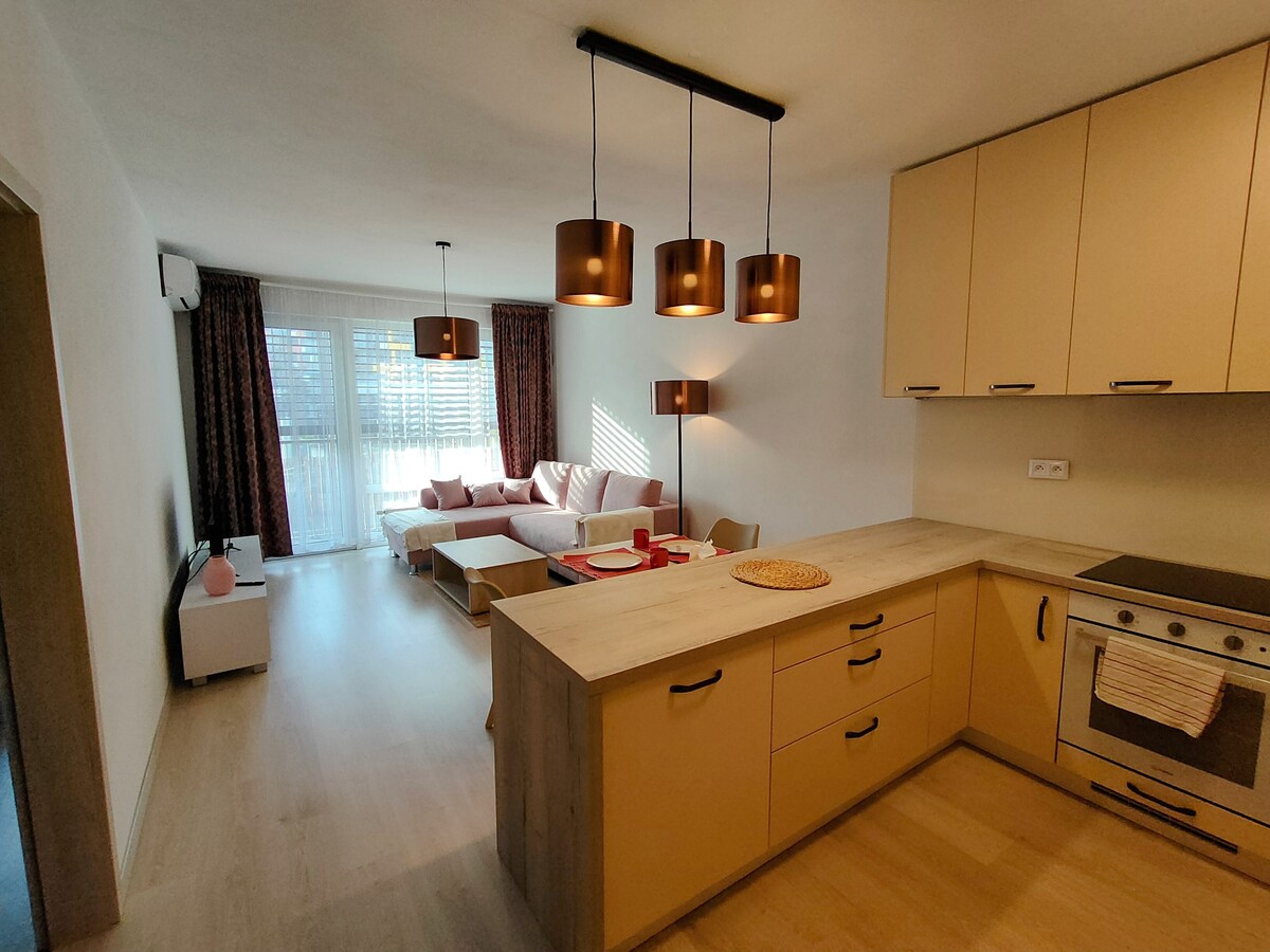 ブラチスラバのスタイリッシュで真新しいアパートをご覧ください。テヘルネ・ポール・スタジアムとアンドレイ・ネペラ・ウィンター・アリーナから徒歩8分、パシエンキー・スタジアムから徒歩10分の場所にあります。 2人様に最適なこの快適なリトリートは、静かな庭園の景色と静かな近所の雰囲気を提供します。近くの路面電車の停留所の便利さをお楽しみください。市内中心部までわずか10分で行けます。 *ゲストは到着時に身分証明書で本人確認をする必要があります。
