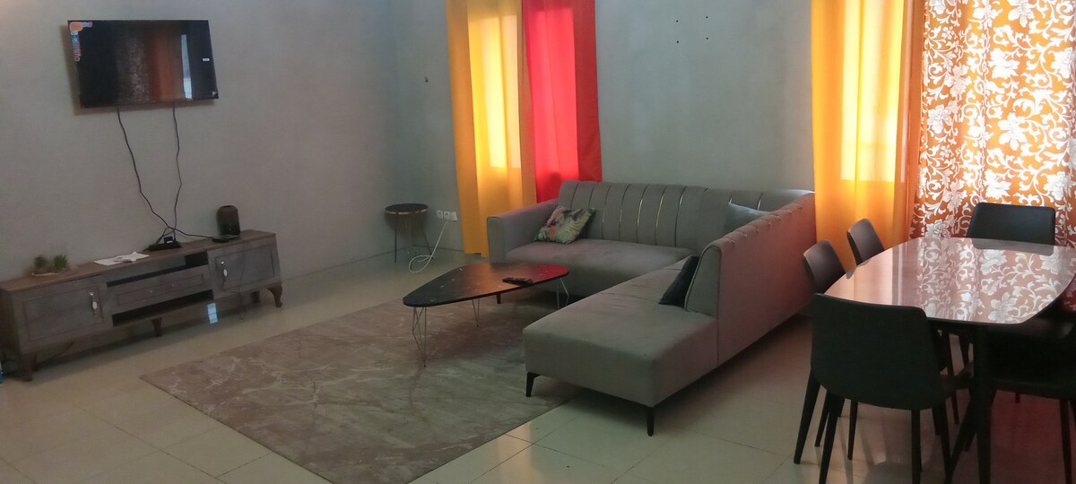 •家具完備の素晴らしいアパートで、2つの寝室、リビングルーム、ミニキッチンエリア、バスルーム、モダンなトイレがあります。 • NetflixとWi - Fi接続を備えた55インチの大きなQLED画面があります。 •昼夜を問わず警報システム、電気フェンス、CCTVカメラで保護された24時間365日対応の清掃サービス。 •停電時の電子発電機、水バッチ、専用駐車場。