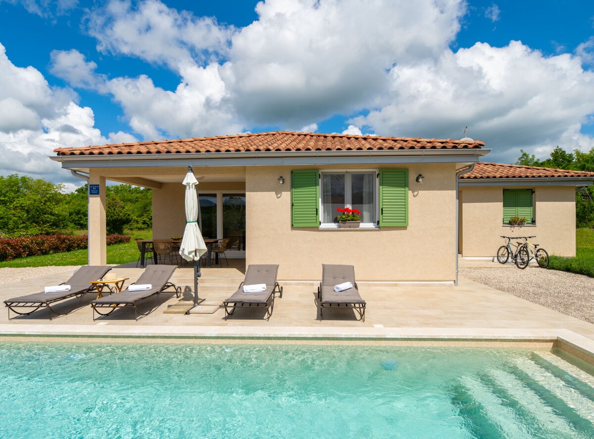 ロヴィニ近くのスタイリッシュなヴィラには、写真に収めたいプール、沈むようなホットタブ、サウナがあります。目を覚ますと、緑豊かなパノラマの谷の景色が広がります。カップルや家族連れに最適で、アドベンチャーパーク、ブリユニ国立公園、恐竜公園、中世の町、地元の料理まで車ですぐです。 現代的な生活の快適さをすべて備えながら、自然に戻りたいと願う人々にとって、真の緑の隠れ家です。2600 m2の庭園(サッカー、スピードボール、バドミントン、プール)で調理やエンターテイメントを楽しめる設備が整っており、お子様や大切な方と一緒にお楽しみいただけます。