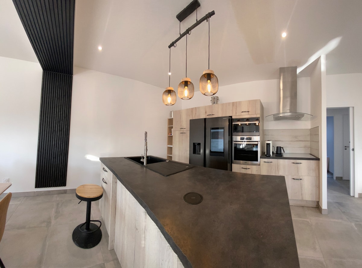 現代的でエコロジカルな住宅の海辺へようこそ。 ご家族やご友人と快適なインテリアデザインをお楽しみください。 無料の自転車、1500平方メートルの共用屋外リビング、子供用のおもちゃ(トランポリン、ガントリー、スライド)、菜園、温室、鶏小屋をご利用いただけます。 ヴァンデ県の素晴らしいビーチを散策し、「オロンヌの砂丘、森、湿地」のナチュラ2000エリアの中心でリラックスしましょう。