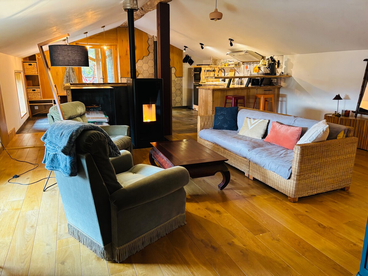 このユニークで型破りな宿泊施設は、敷地の高台に静かに佇んでいます。 竹や松の木に囲まれた、居心地の良い木造シャレーがあなたをお迎えします。ここでは、大きなガラス窓から自然のリズムを感じながら生活できます。明るさを満喫し、星空を眺めるのに理想的です。洗練されたインテリアと最高の快適さ。 9月から4月まで、追加料金でスパをご利用いただけます:薪を燃やした北欧式のお風呂! ようこそ!ロリーヌとヴィクトル