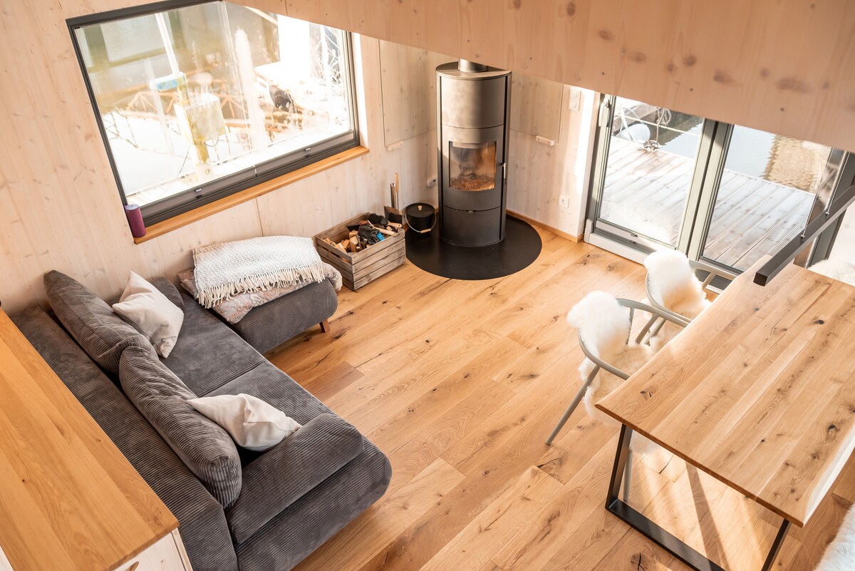 居心地の良い高級感:暖炉付きハウスボート「プチ」