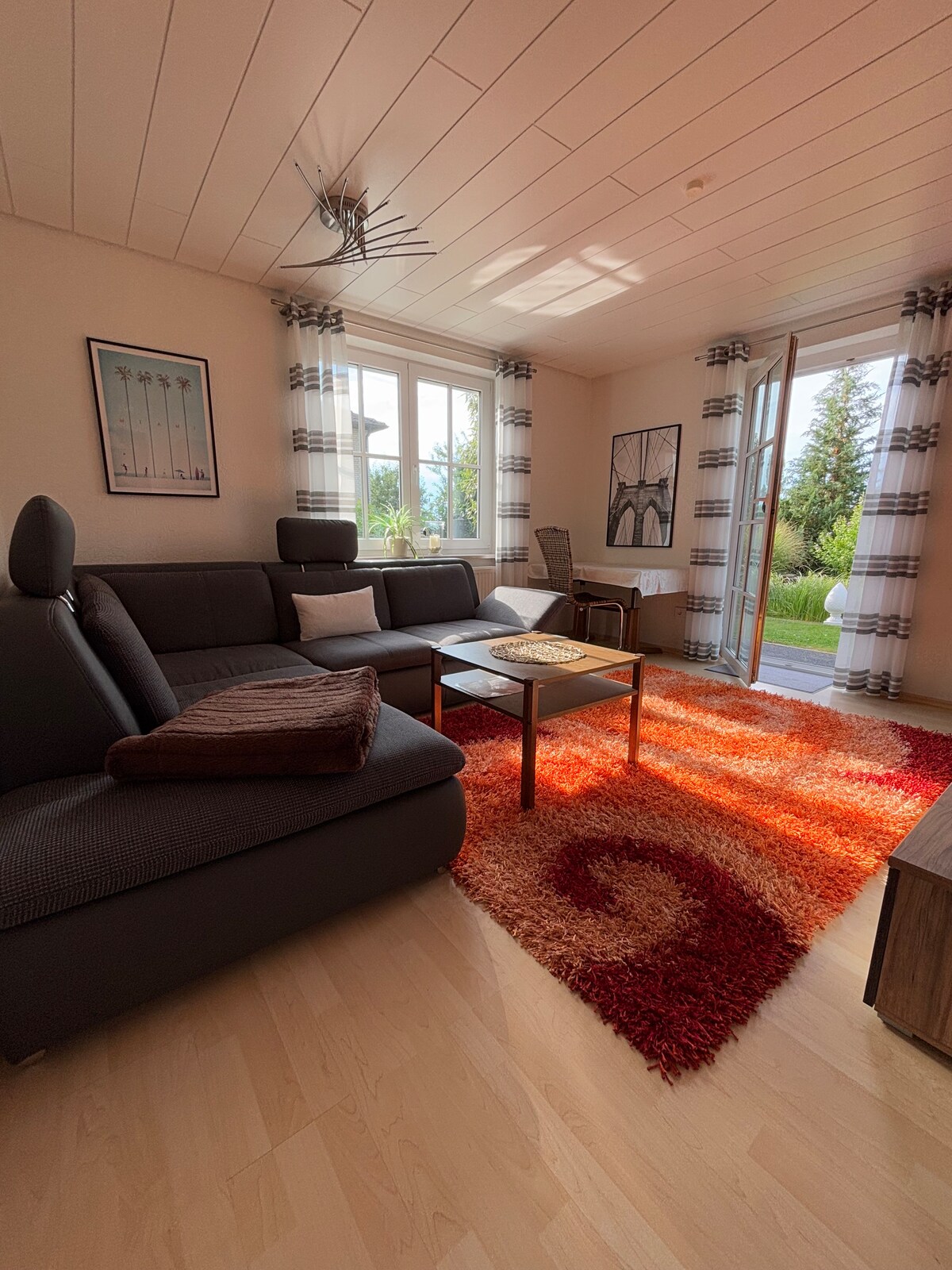 アパートは私の家の地下にあります。彼らはアパートを自分のためだけに使用し、独自の入り口もあります。 リビングエリアは明るい部屋で、面積は約26平方メートルです。ソファーは寝る機会となり、幅1.40mで2名で十分です。 ソファーには、約6 cmの泡立て家具があります。もう一つの選択肢は、通常のベッドです。駐車場はすぐ近くにあります。