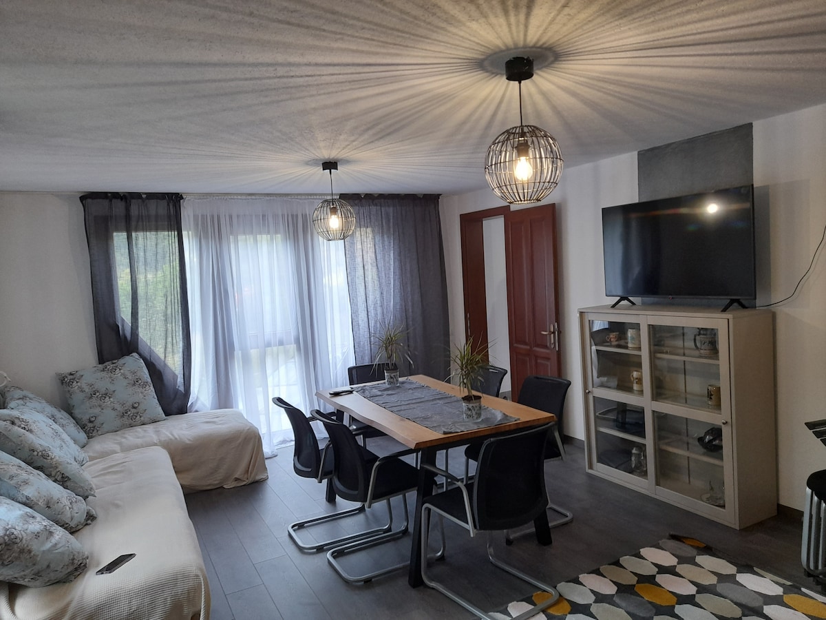 静かな小さな町にある、この快適な山の隠れ家に逃避しましょう。快適な拡張可能なソファを備えた明るいリビングルーム、キングサイズのベッドを備えた寝室2室、柔らかく落ち着いたインテリアが備わっています。 外に出ると、コーヒーやバーベキュー、くつろぐのに最適な緑豊かな庭があります。屋根付きの暖房付きテラスでは、どんな天候でも新鮮な山の空気を楽しむことができます。 カップル、小家族、または友人との旅行に最適なこの家は、モダンな生活の快適さと山での休暇の魅力を兼ね備えています。