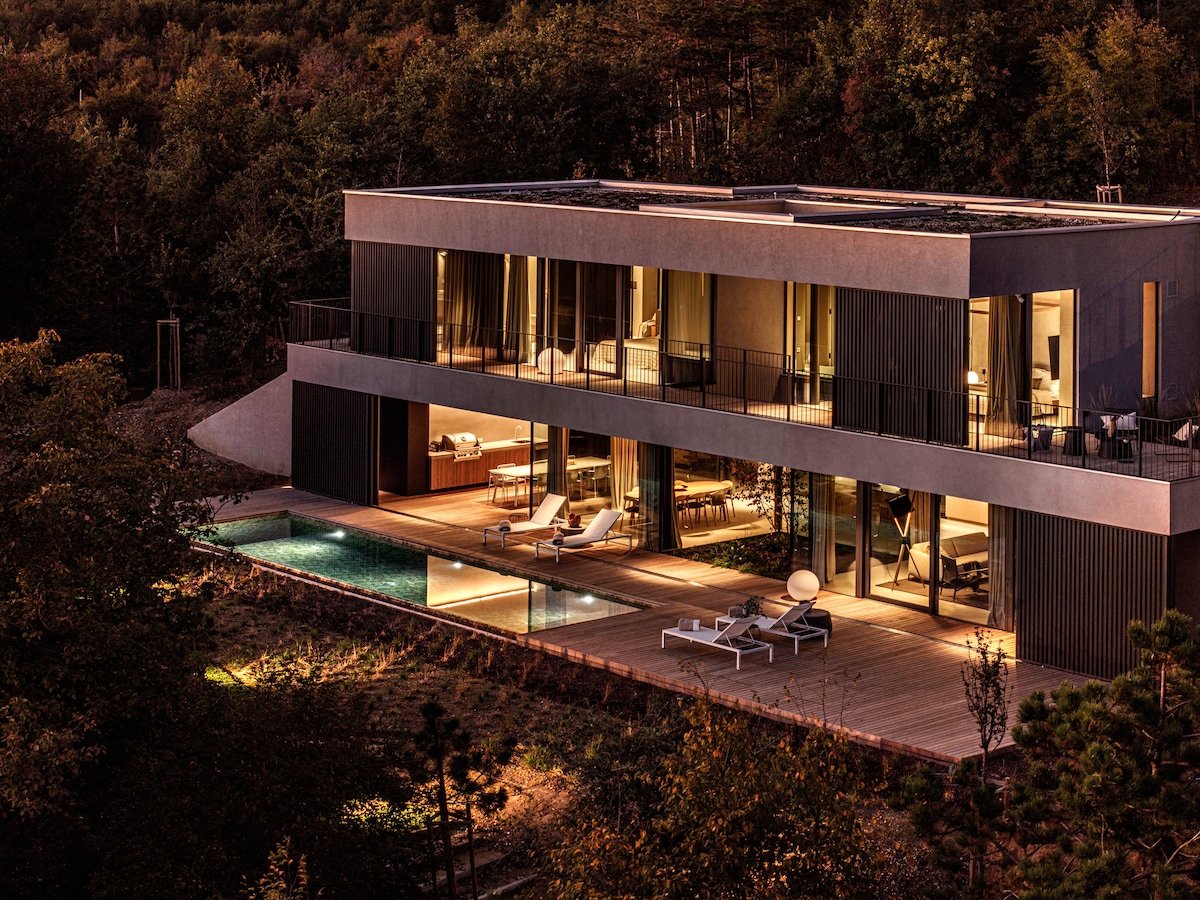 2024年に建てられた、専用温水プール付きのアートヴィラ「Malija」