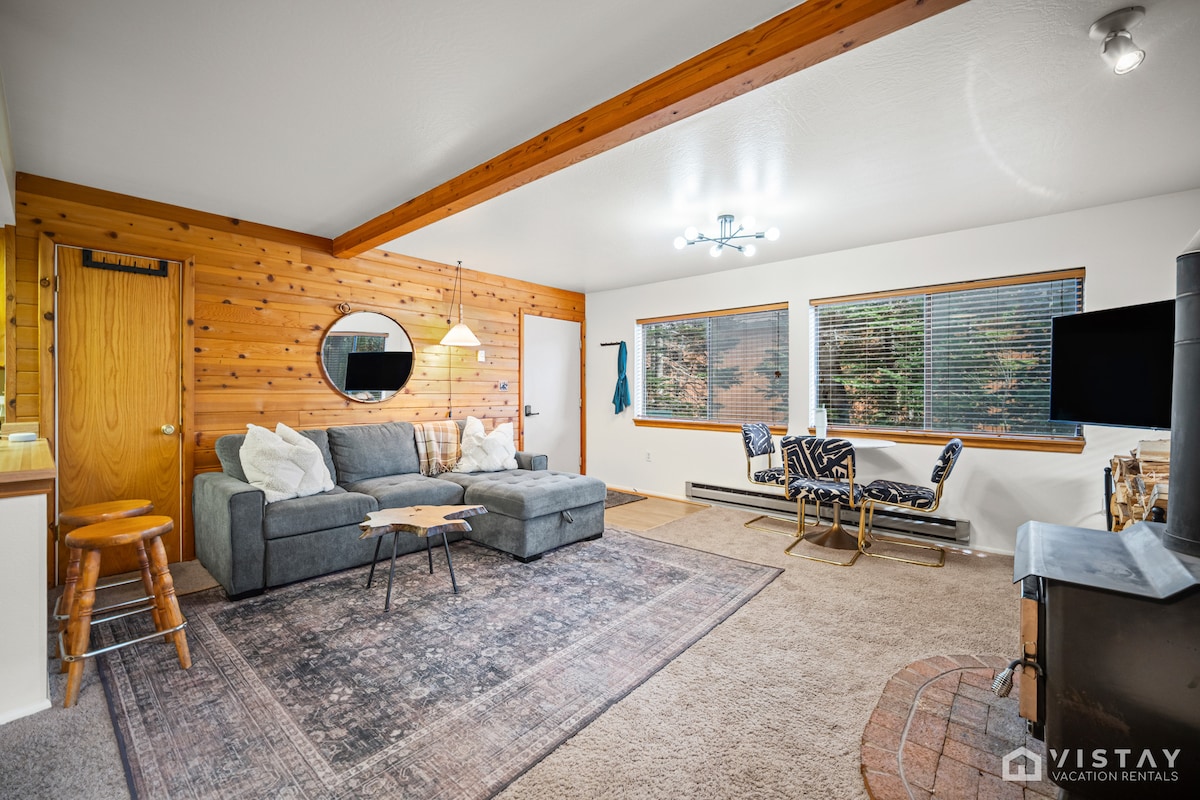 This well-designed, pet-friendly cozy modern retreat with a sophisticated nostalgic vibe awaits! Located across the street from Giant Steps Lodge, restaurants & general store this unit comfortably sleeps 4 (1 K, 1 Q) and can accommodate up to 6 with the sofa bed. You'll also enjoy new appliances including full size w/d, smart TVs, tech upgrades, lots of space for your gear in our large entry and plenty of room to relax after your adventures. License No. BH-20291, max occupancy 6, 1 parking spot.