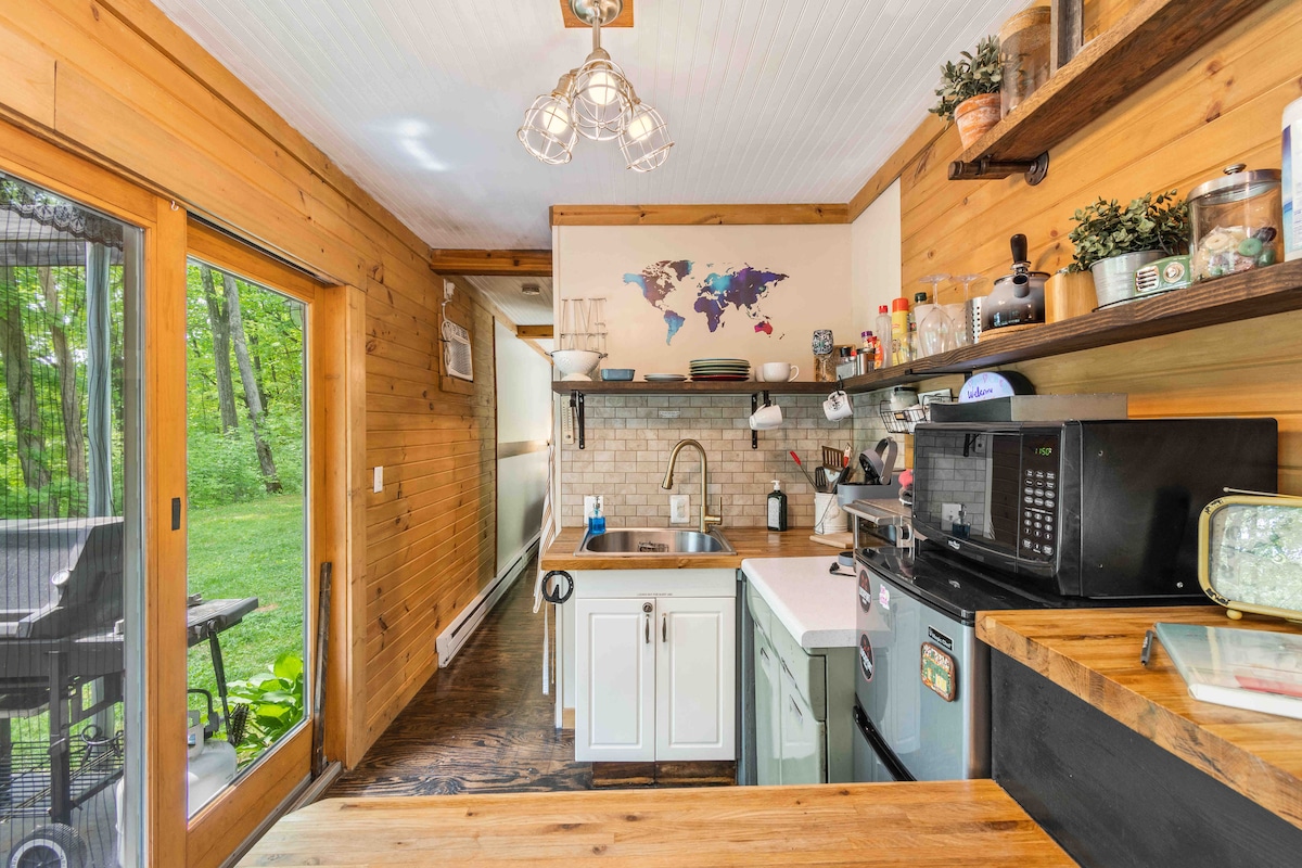 イニスフリーファームの「ビッグタイニー」は、フルサイズの快適さと70エーカーの美しい環境を備えています。お湯が出るシャワーとエアコンを使いながら自然に戻りましょう。テレビとWi-Fiは利用可能ですが、電源を切り、屋外で料理をし、焚き火のそばでリラックスするのに最適な田舎の場所です。素朴な自然環境と、あなたにふさわしい快適さの組み合わせです。 この小さな家は、小さな池の湖畔に移動しました。冬場に大雪が降った場合は、全輪駆動車または四輪駆動車が必要になります!
