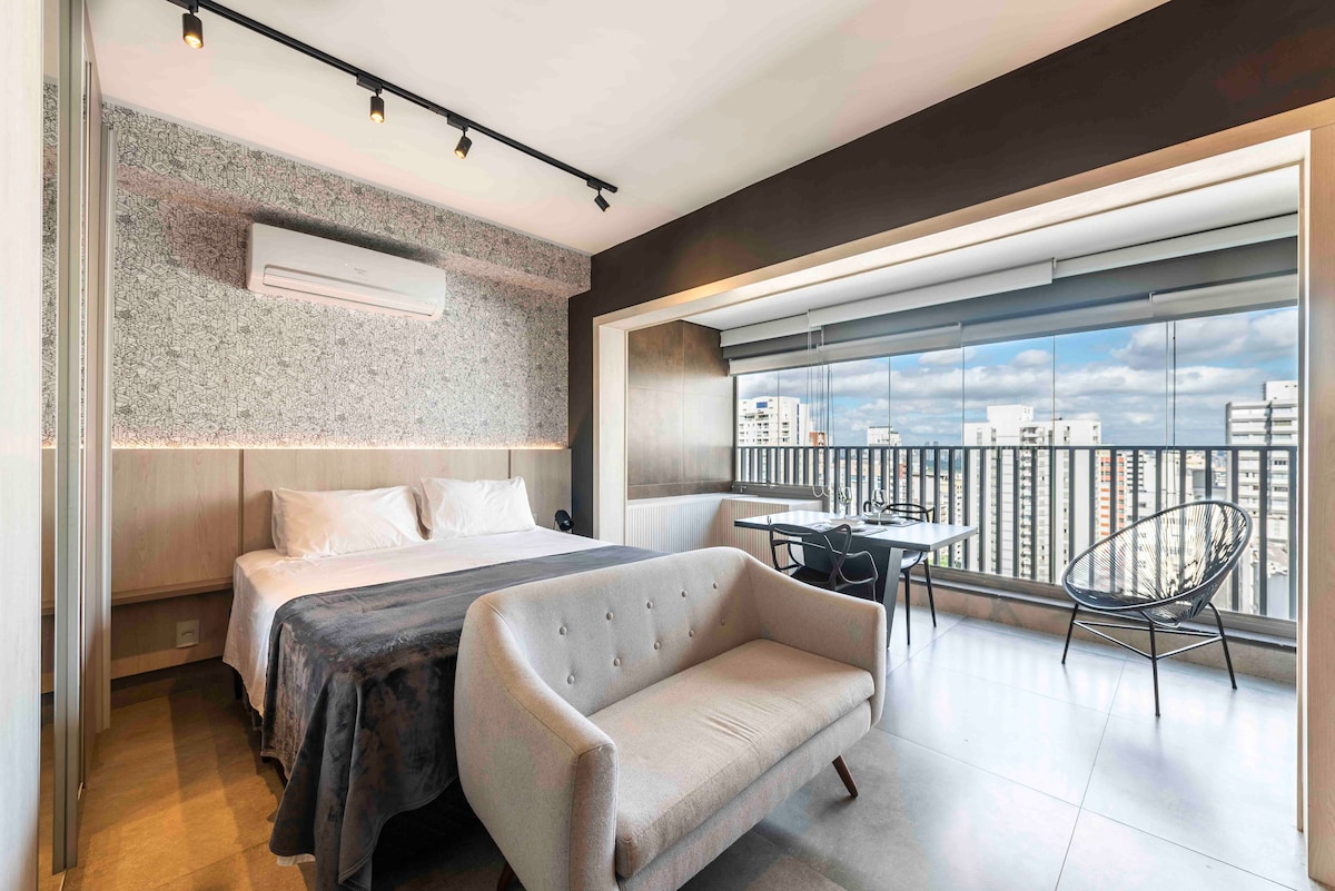 Flat de design assinado nos Jardins, a 2 quadras da Av. Paulista e 4 da Rua Oscar Freire. Ideal para quem valoriza conforto e localização estratégica. O apartamento oferece cozinha equipada, Wi-Fi de 500MB, garagem com manobrista e serviço de camareira em dias úteis já incluso. Acesso prático por código, sem uso de chaves. Perfeito para viagens a trabalho ou lazer, com a sensação de estar em casa e a praticidade de um hotel.