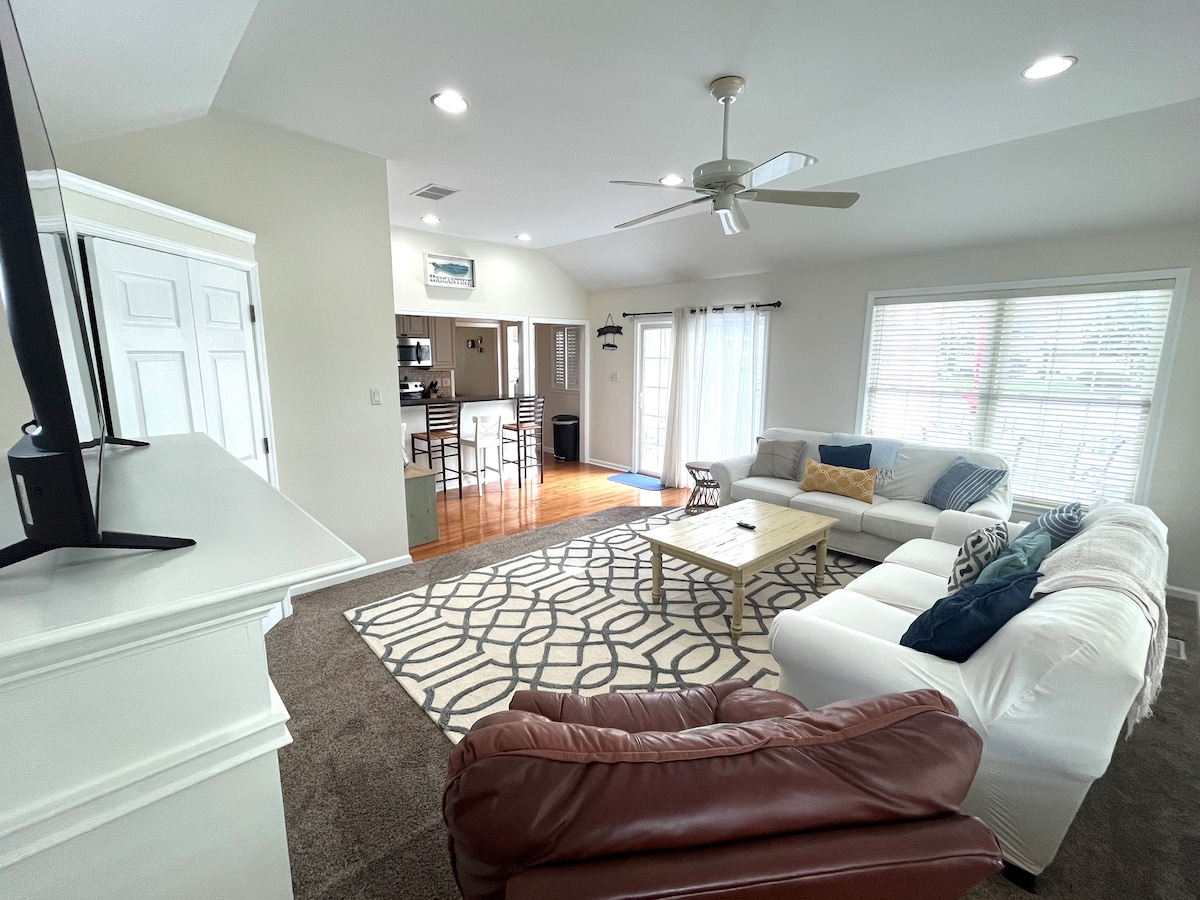 ビーチまで1.5ブロックのこの落ち着いた1階2寝室1バスルームのデュプレックスホームで、ご家族一緒におくつろぎください。最近改装されたキッチンには、飲料用冷蔵庫などの新品家電が備わっており、美しいバスルームにはウォークインシャワーがあります。1つ目の部屋にはクイーンベッドが1台、2つ目の部屋にはフルサイズの二段ベッドが1台、リビングルームのソファは折りたたみ式でフルサイズのベッドになります。家にはセントラルエアコン、キッチンから出るユーティリティルームに洗濯機と乾燥機があり、グリルがある裏庭にアクセスできます。