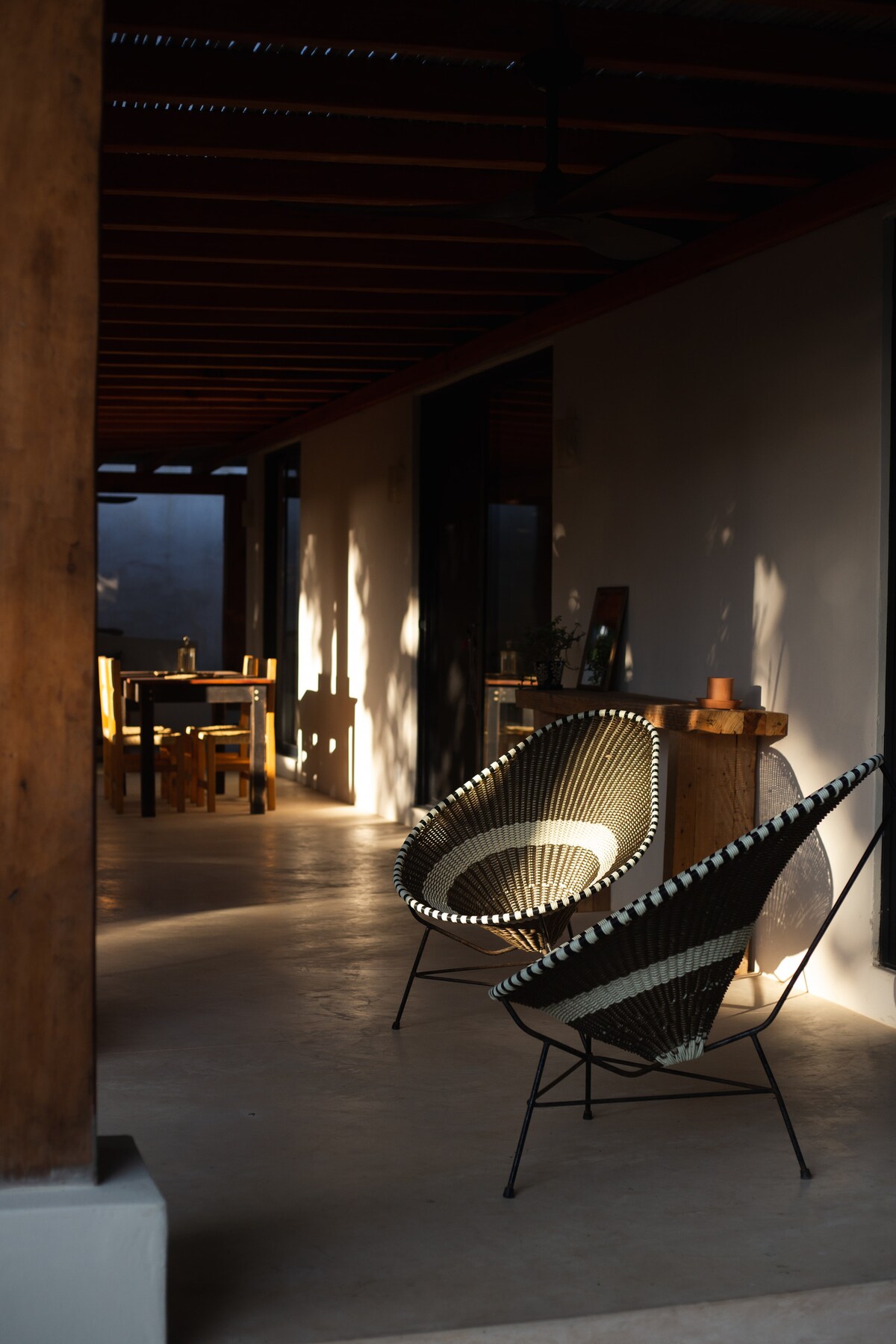 Located just one minute’s walk from La Punta de Zicatela beach, on a quiet street that offers both tranquility and proximity to the vibrant surf scene. Fully remodeled in 2023 by Latinta Studio, the house preserves its original Oaxacan charm with arched ceilings while introducing a contemporary touch through new details. Set within a private, fenced yard, Casa Tëjk is designed for those who want to embrace the outdoor beach lifestyle of Puerto Escondido while enjoying comfort and privacy.