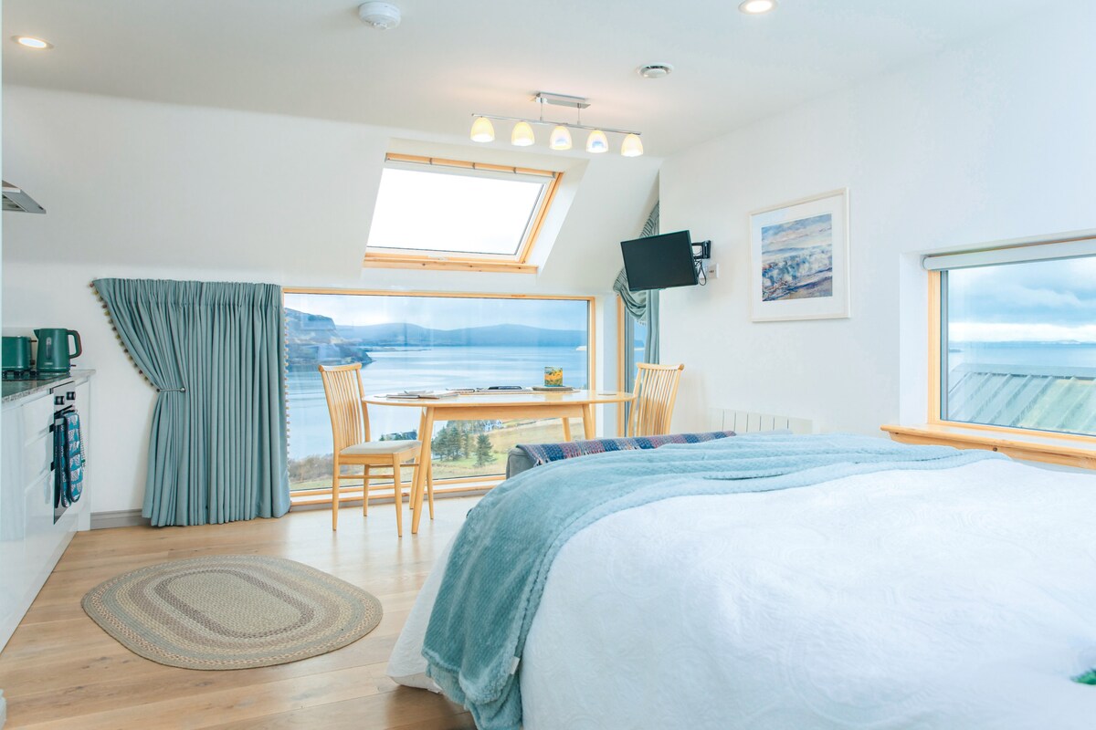 Taigh Glas Studioへおかえりなさい。 タイグラスは、自然遺産の半島であるウォーターニッシュのロッチベイにあり、海、スタインウォーターフロント、西部諸島の夕日を見渡すことができます。 この家は、ロッチベイのミシュラン星付きレストランとスタイン・インから徒歩すぐで、スカイ・スキンズとそのコーヒーと自家製ケーキを楽しめるユルトから道路に沿っています。 ストー、キライング、フェアリープール、フェアリーグレンなど、スカイ島のすべての名所の中心に位置しています。