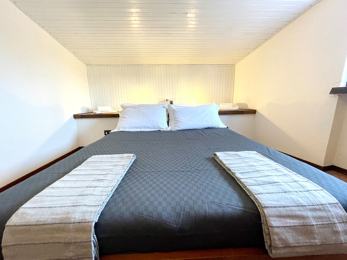 92平方メートルのアパートメント。古代の魅力と現代の快適さが融合しています。魅力的な露出レンガが特徴的な空間は、温かく本物の雰囲気を醸し出しています。4〜5人用のダイニングエリアとテーブルを備えたオープンスペースキッチン。バスルームには、大きなシャワーと2人用のリラックスバスタブが備わっています。 駐車場と中庭。宿泊料金には、レストラン「アイ・ボルギ」のプール(客室から3km)への無料入場券2枚が含まれています。