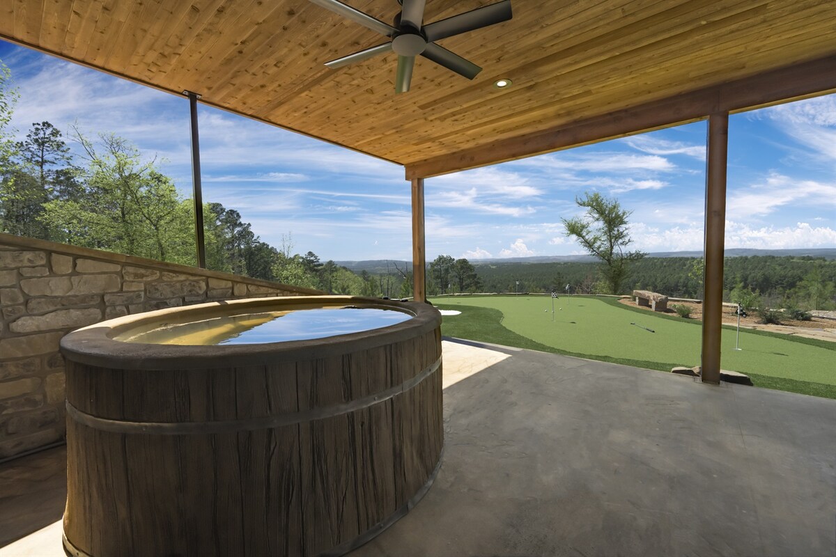The Highlander by Memory Maker Vacation Rentals *5 Bedrooms/6 Baths - Sleeps 20 *Sunset Views of the Ouachita Mountains *2 Story Play Castle with Slide, Climbing Net & Rock Wall *Two Levels of Large Decks *Epic Game Room with Ice Maker, Drink Fridge, Pool Table, Shuffleboard, Foosball, & Arcade Table *Four King Bedrooms with Ensuite Bathrooms *Huge Bunkroom with Private Bathroom *Fire Table, Outdoor Fireplace & Firepit *Large Hot Tub *Design Reminiscent of the Highlands of Scotland