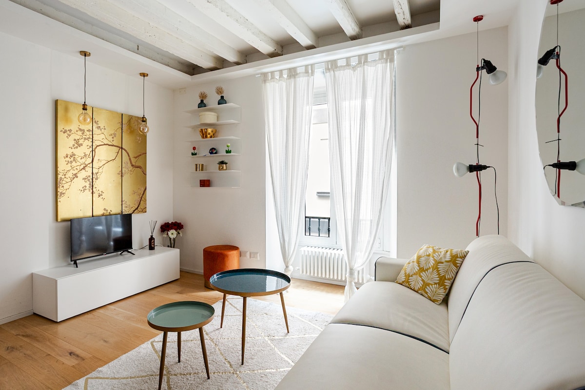 Live in the very center of Milan in our stylish and spacious apartment (80sqm/860sqft) located in a traditional historical Milanese building. The apartment features all comforts such as AC, two bathrooms with showers, washing machine+dryer, a fully-equipped kitchen, a super-fast internet connection and LED TV with Netflix. Just minutes away from Milan's major sites, the apartment is unusually quiete since it's located in the inner part of an historical building (second floor without elevator)