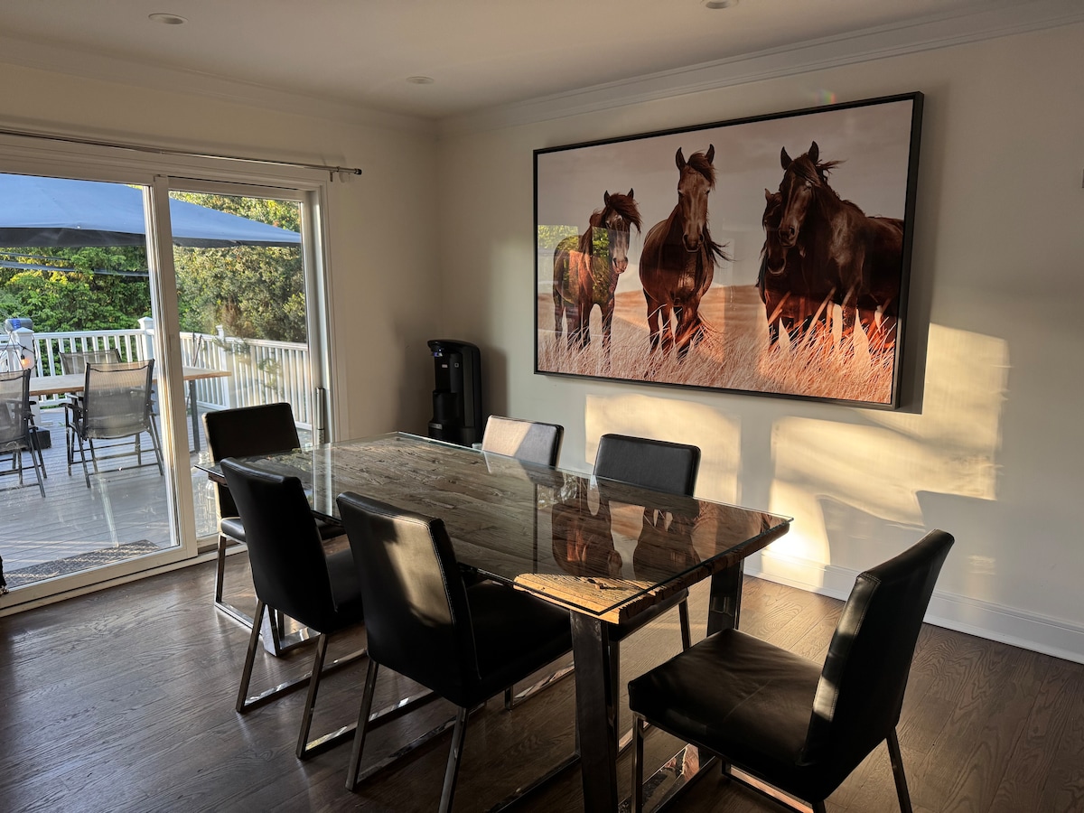 居心地が良く、快適で、シックな郊外の家で、寝室3部屋、バスルーム2部屋、オフィススペース2部屋があります。 リラックスした週末以上に最適です! 6名様まで宿泊可能、電気バーベキュー、ジャグジー、ファイヤーピット、素敵な読書を楽しんだり、水タバコを楽しんだり、温かくて滑らかな飲み物を楽しむのに最適な広い裏庭。JFKまで20分、主要な道路、ルーズベルトフィールドモール、ゴルフ、すべての地元の大学(アデルフィ、ホフストラ、モロイ、ナッソー)の近くにあります。 パーティー/イベントの場合、ゲスト1人1日あたり100ドルの追加料金がかかります(最大20人)。 例外はありません。