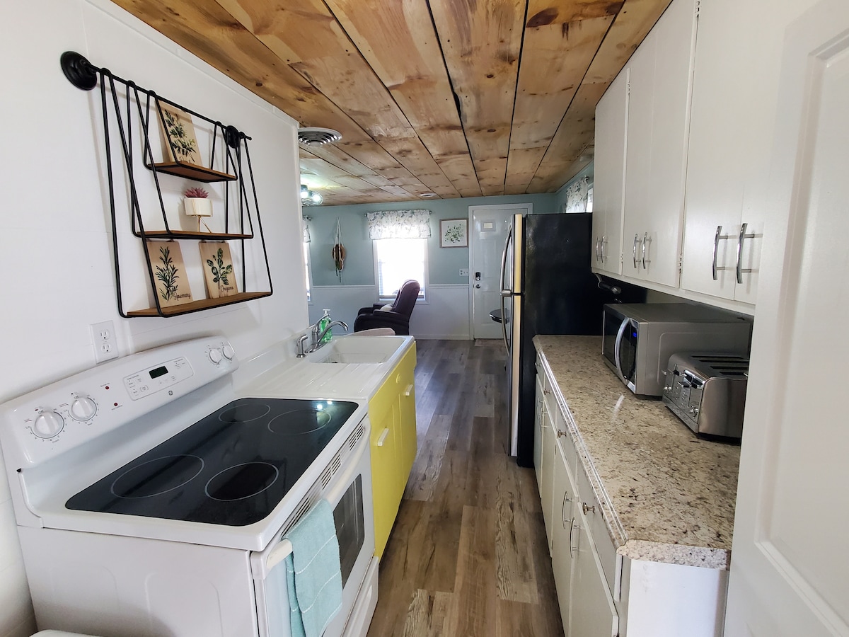 The Barn Quilt Bungalow - 窓から馬が見える眺望! 寝室1室(クイーンサイズベッド)、引き出し式マットレス1台(クイーンサイズ)、バスルーム1室(シャワー)、リビングルーム、キッチン、暖房、エアコンが備わっています。 トレイルを散策したり、ワイナリーまで歩いたりできます。 最大宿泊人数は2名様です。 3人目のゲストを追加する場合は、1泊あたり30ドルの追加料金がかかります。 ゲストは、滞在期間の長短にかかわらず、追加の人を同伴することはできません。最大宿泊人数を超えた場合は、すぐにAirbnbに連絡が入ります。 お子様、動物、介助動物(アレルギー/健康上の危険)の同伴は禁止されています。