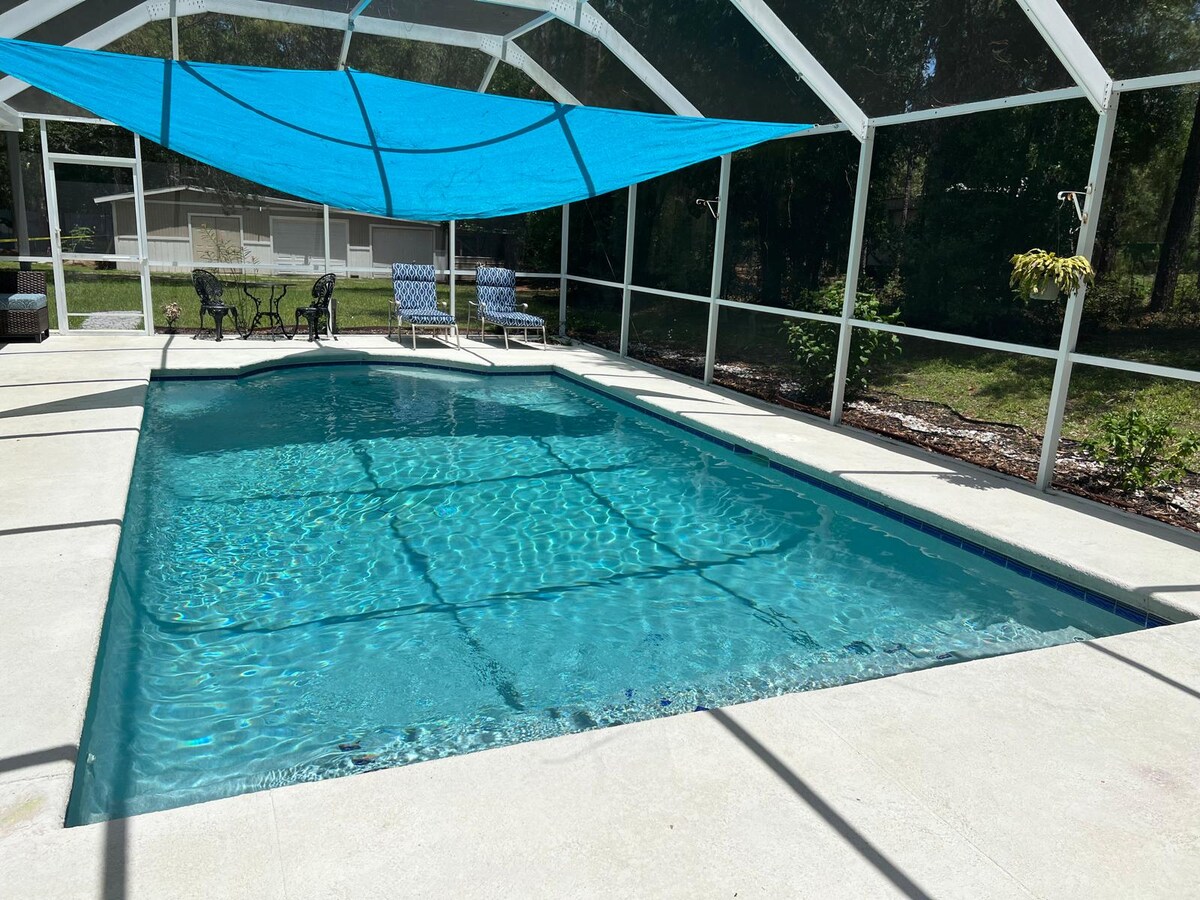 こちらの広々とした静かなお部屋で、日常の心配事を忘れましょう。ブランチビル・リトリートへようこそ!私たちの家は、静かでリラックスできる空間を提供し、必要な休息とリラクゼーションを得ることができます!ご自宅にいるかのようにくつろぎ、プールサイドで冷たいドリンクをお楽しみください!ウィーキ・ワチー・スプリングス(車で9分)の透き通った水でパドルを漕ぎ、マナティー、鳥、カワウソ、カメを観察しましょう。ビーチでイルカを眺めながら午後を過ごしたり、美しい塩水プールで泳いだりしてください。プールは追加料金で温められます。