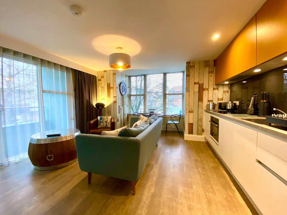 ビーチから徒歩わずか数分の、ボーンマスの静かなアラムチン地区の中心部に位置する、180度の海を望む受賞歴のある2ベッドペントハウスアパートで、完璧な休暇をお楽しみください。 この宿泊施設には2つのダイニングエリアがあり、そのうちの1つはボーンマスビーチを見渡す大きなバルコニーにあり、冬の夜にはオーダーメイドの薪ストーブを使用できます。 オープンプランのキッチンから居心地の良いリビングルームにつながり、超高速Wi-Fiを通じてSky Glass TVエンターテイメントをお楽しみいただけます。