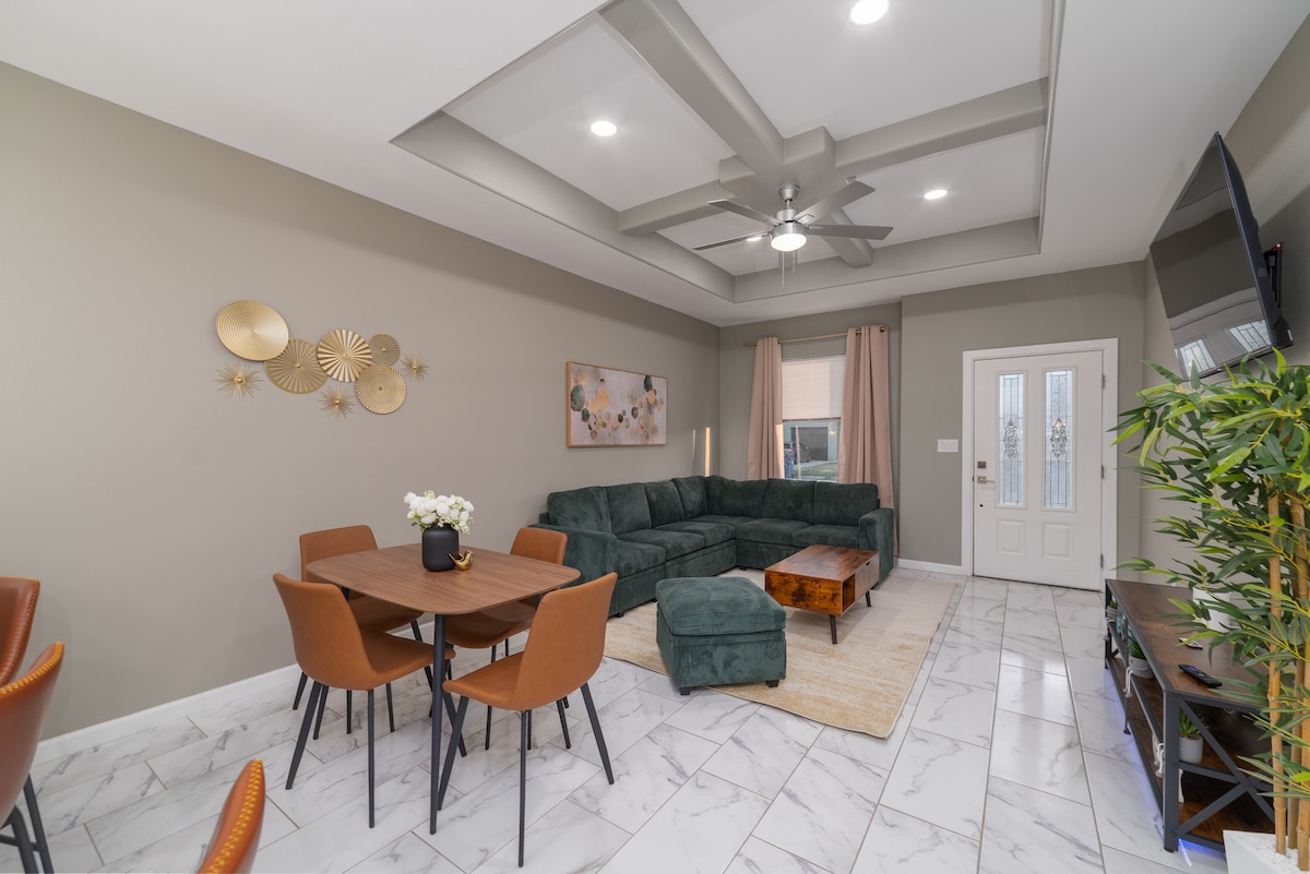最近改装されたばかりのブラウンズビルの4寝室2.5バスルームの宝石を体験し、ウォーターフロントのフレンドリーな雰囲気を体験してください。 この美しい家は、活気あるダウンタウンからわずか15分、スターベースからわずか30分の場所にあります。 多くのレストラン、ショップ、アトラクションの近くにあるリラックスできるオアシスです。 快適な寝室✔4室 ✔ オープンデザインのリビング ✔ フルキッチン ✔ ゲームルーム 屋根✔ 付きパティオ ✔ プール ✔ スマートテレビ ✔ 高速Wi-Fi ✔ 仕事用スペース ✔ 洗濯機/乾燥機 ✔ 無料駐車場 詳細は以下をご覧ください!