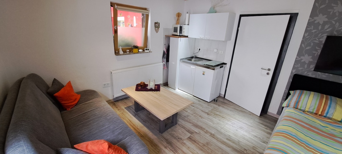 この平和なオアシスで休憩し、リラックスしてください。 この小さなアパートには、衛星テレビ、USB接続付きコンセント、快適なベッド、そして快適なソファーベッドが備わっています。キッチンは、簡単な食事を準備するのに十分な設備が備わっており、タオル、シャワージェル、シャンプーが基本的に含まれています。コーヒーと紅茶パッドもご用意しています。小さなテラスやアルパカの牧草地で一日を終えましょう。