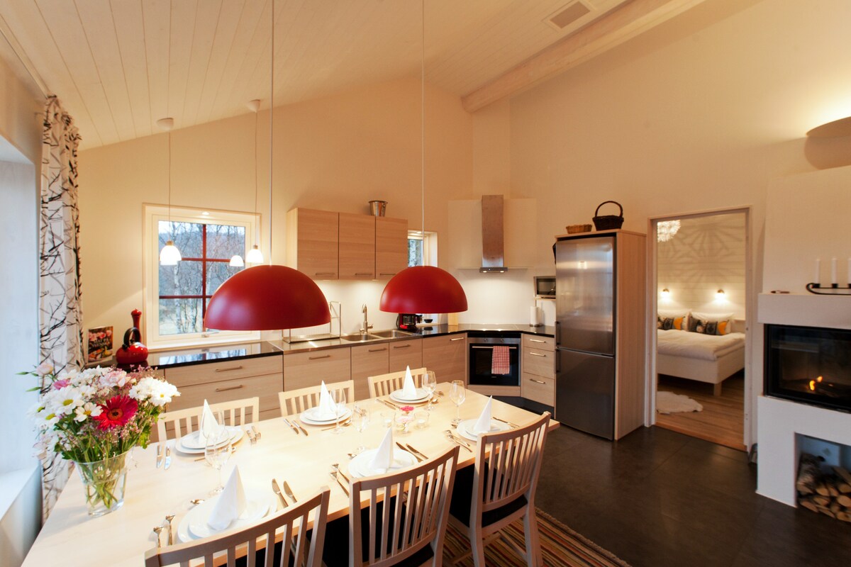 新築のエレガントなコテージにご宿泊いただけます。周辺環境は素晴らしく、雄大なハムラ山(Hamrafjället)を望むことができ、ゲレンデ、クロスカントリースキー、スノーモービル、サイクリング、ハイキング、釣りに近い場所にあります。 キッチンとリビングルームの間はオープンで、パチパチと音を立てる暖炉と、山々の素晴らしい景色が雰囲気を高めています。キッチンには必要な設備がすべて揃っており、8〜10人用のダイニングテーブルがあります。 寝室1:ダブルベッド 寝室2:2段ベッド 寝室3:テレビ付きの2人用ソファベッド