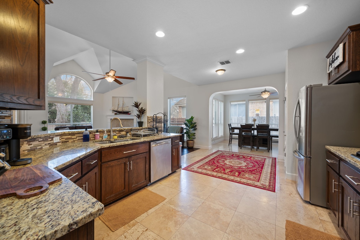 ロケーションとラグジュアリー!家族旅行、出張、地元のイベントに参加する方にぴったりの快適な宿泊先です! 旧市街ラウンドロックから10分、歴史的なジョージタウン・スクエアから15分、オースティンとテキサス大学から25分です。素晴らしいレストラン、ショッピング、公園に素早くアクセスできます。私たちは、池、小さな自然公園、テニスコート、静かな通りがある、静かで、確立された、木が茂るエリアにあります。 私は1年中ガーデニングをしているので、ハーブや野菜を収穫してお楽しみください。