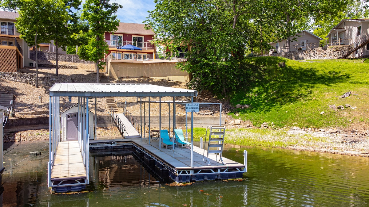 家族や友人との湖での次のリトリートに備えた湖の家全体。 広々としたリビングエリアには、専用ドックとカヤックを備えた屋外デッキスペースがあります! 夕日を眺めながら、屋外でグリルを楽しんだり、ガスファイヤーピットの横で過ごしたりできます。 薪暖炉の横でくつろぎましょう。 **新しい低トリトゥーンボートレンタルオプションまたはボートをサイドドックするスペース。 ストリップ、食料品店、レストランに近いです。 ミニゴルフ、ゴーカート、ワイナリーも近くにあります。 週末や長期の滞在に最適です。