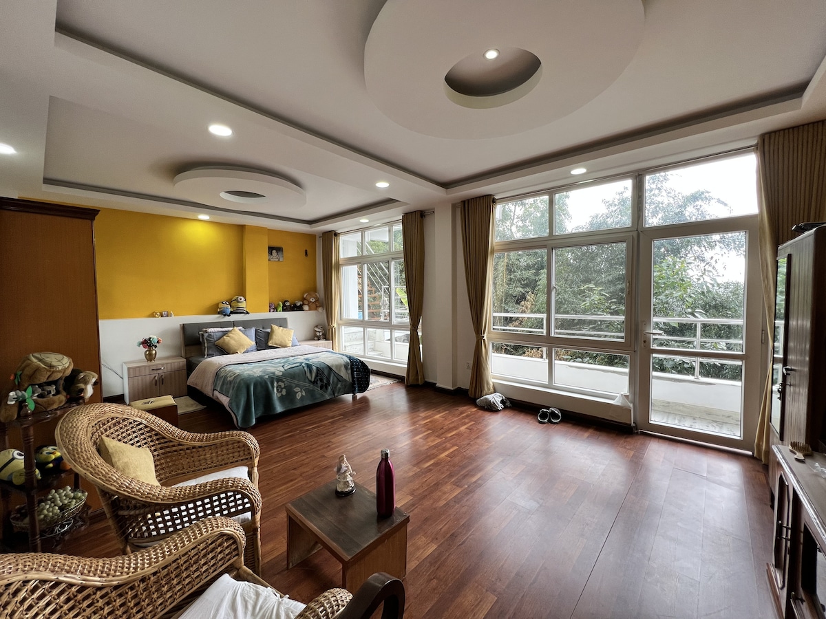 Tucked on a forest hilltop 12km from Kathmandu, our peaceful earthbag attic home invites deep rest. Enjoy the glass conservatory for meditation or relax on the deck above a lush food forest. Rooted in simplicity, a labor of love made for stillness; wake to birdsong, sip tea with Himalayan views, or wander forest trails. Perfect for slow days, soft silence, and fresh air. Fast WiFi & pickups available. Let go, unwind, and recharge in our unique sanctuary 40 mins from the city. Total peace.