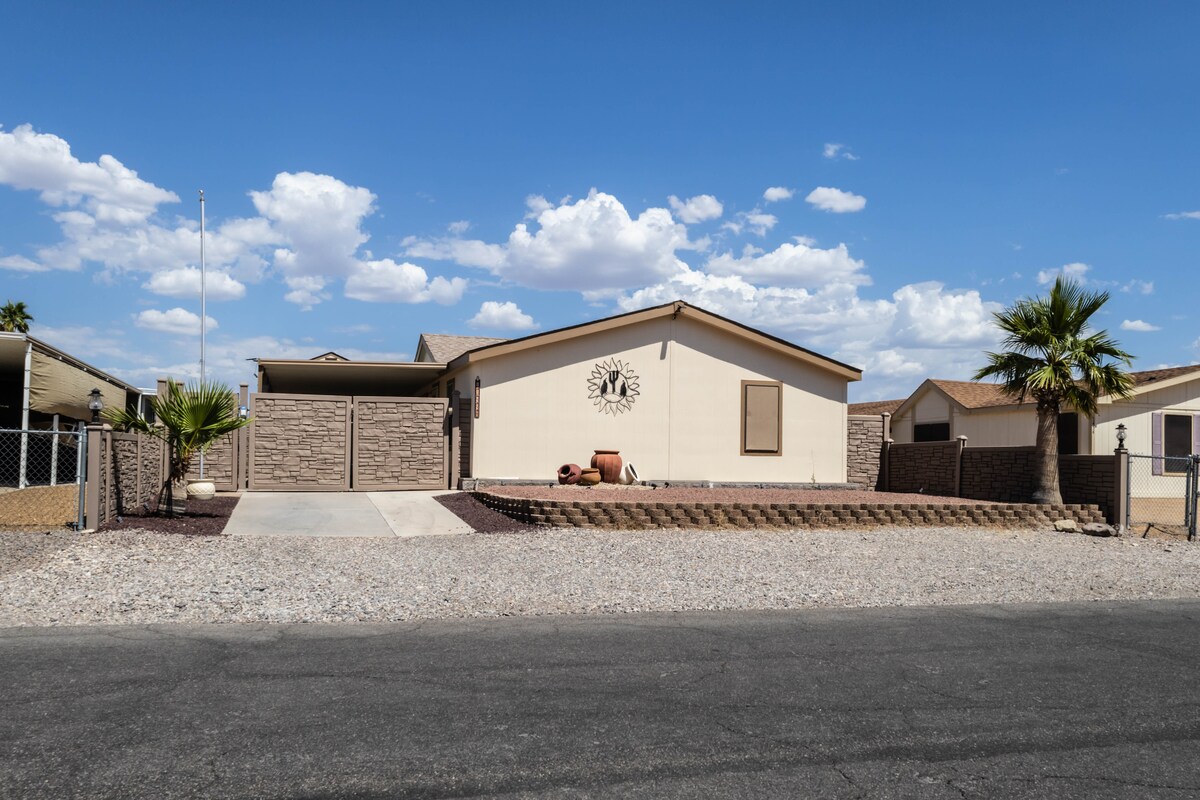 私たちの砂漠のオアシスへようこそ。 あなたにぴったりの場所があります!! 湖での1日、Razorでの午後、カジノでの夜をお楽しみください。私たちの家はアリゾナ砂漠の美しさを楽しむことができる場所です。 80インチのテレビでNetflixを楽しんだり、バレーボールプール(側面3.5フィート、中央5フィート)でくつろいだりできます。 屋根付きパティオでバーベキューとお食事をお楽しみいただけます。 フレンドリーなエリアです。騒音禁止時間:午後10時~午前7時。 車道と通り(ガレージアクセスなし)のレイザー用サイドパーキング。 ペット禁止、喫煙禁止!花火厳禁!