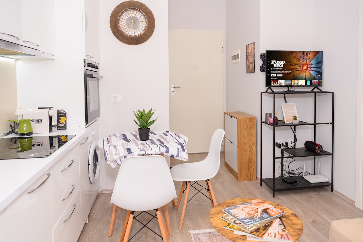 市内で最もクールなアパートへようこそ!😎 広々とした2ベッドルームのアパートで、ご滞在中は快適でスタイリッシュなリトリートをお楽しみいただけます。窓からたっぷりの自然光が差し込み、中に入った瞬間に穏やかで若返った気分になれます。 中に入ると、エレガントな家具が置かれたリビングエリアが出迎えます。オープンコンセプトのデザインがリビング、ダイニング、キッチンをシームレスにつなぎ、リラックスするのに最適な空間を作り出しています。 設備が整っています!