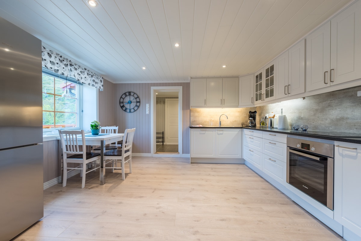 必要なものがすべて揃った漁師の小屋で、ロフォーテンでの滞在をお楽しみください。 キャビンは新しくモダンで、海と山のすぐそばにあります。 キャビンには必要なものがすべて揃っており、設備の整った大型キッチン、4つの寝室、美しい景色を望むリビングルーム、シャワーと洗濯機を備えた1.5バスルーム、家族みんなで過ごせるダイニングルームがあります。 2階のリビングには素敵な暖炉があります。