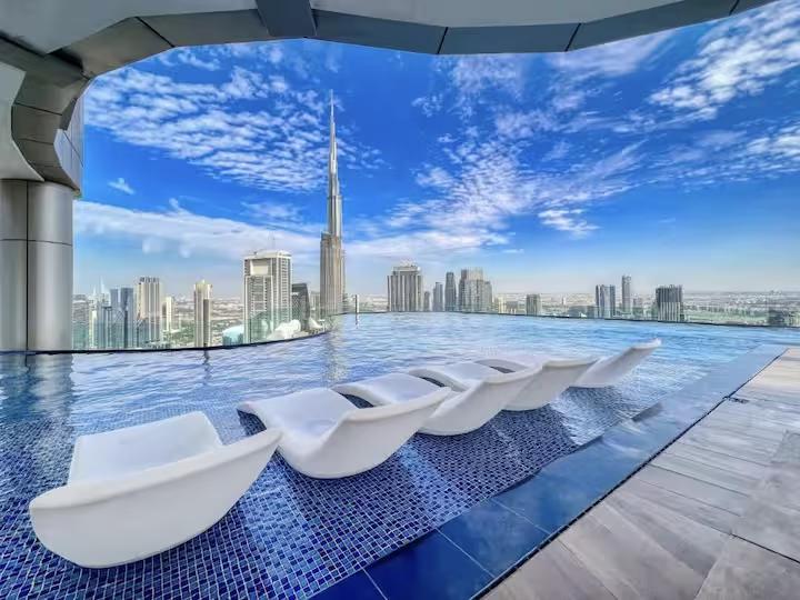 屋上プールとブルジュ・ハリファの眺望が楽しめる夢のアパート!