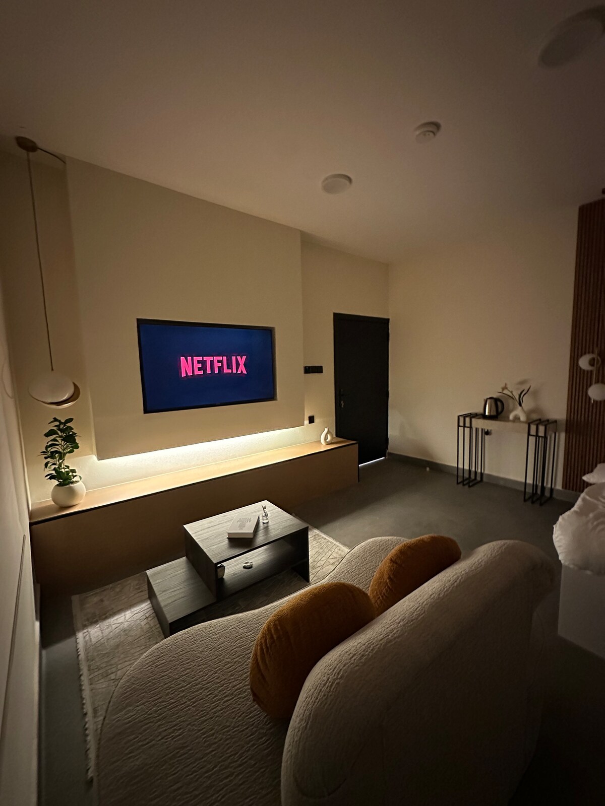 温かくモダンなボヘミアンデザインのプライベートホテルアパートメントで、モダンなラグジュアリーと静かな快適さの完璧な組み合わせを体験してください。 また、サイトはすべての日常のニーズに近いことが特徴です アパートはモダンなホテルと美しいエントランスを備えており、近々プール、ジム、マッサージセクションなどのホテルサービスが利用できるようになります。 アパートにはすべてのニーズが揃っており、マットレス付きのマスターベッドを備えた広々としたベッドルーム、美しいデザインのリビングルーム、70インチのスマートスクリーン、Netflix、YouTube、Shahid、サイドバーセッションがあります。