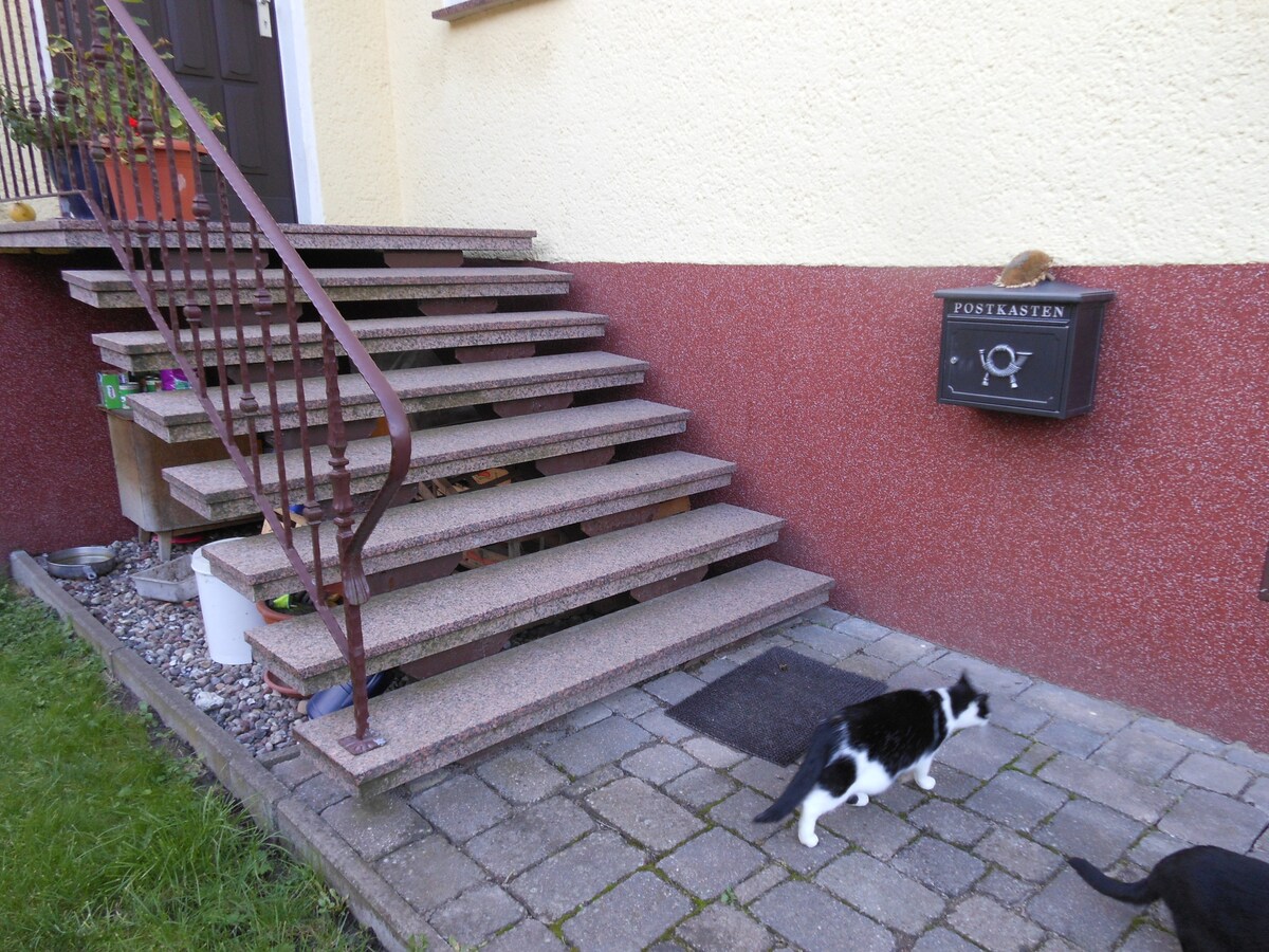 Wollen Sie mal eine Auszeit von der Stadt nehmen und den Deutschlandurlaub im Grünen verbringen? Suchen Sie Entspannung und Ruhe in dörflicher Umgebung, eingebettet in die Natur? Dann können Sie bei uns wunderbar ein paar Tage, Wochen oder auch nur für die nächste Radfahr- oder Wanderetappe die Seele baumeln lassen. Die Appartements befinden sich im 1. Stock der denkmalgeschützten "Alten Schule" und sind gemütlich und modern eingerichtet, ausgestattet mit einer Küchezeile, WLAN und Fernseher.