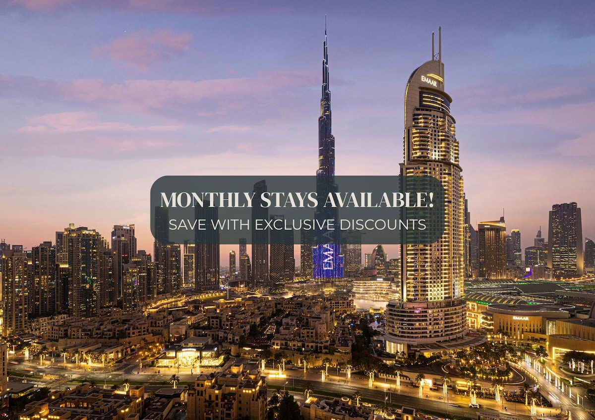 ドバイのダウンタウンの中心部に位置する、有名なブルジュ・レジデンスの高層ラグジュアリー1BRにご滞在ください。ブルジュ・ハリファとドバイ・モールからわずか数歩で、道を渡る必要はありません。 この85平方メートルのプライベートリトリートには、オールドタウンの日の出を眺めることができる家具付きバルコニー、ゲストアカウント付きの設備の整ったワークステーション、レインシャワー付きの高級洗面所、セルビアーノのピアノが備わっています。 24時間チェックイン、高級家電、ジム、プール、スカッシュコートをご利用いただけます。