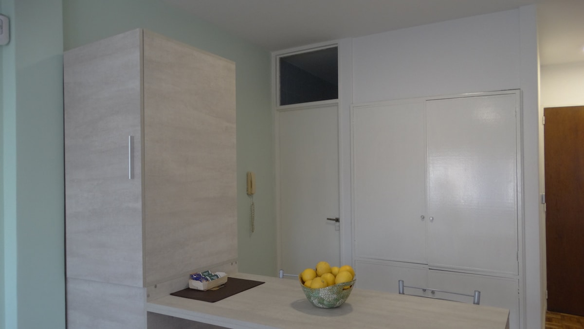 アパートは2階にあり、階段でアクセスできます。 専用のバスルーム(トイレ付き)があります。 電気コンロ、電子レンジ、電気トースター、食器洗い用シンク。 インバーター式冷暖房エアコン。 スプリングマットレス付きボックスベッド ベッドサイドテーブル2台と引き出し付きチェスト。 32インチテレビ。 食器一式、お皿、コップ、グラス、カトラリー、カップ、やかん、電気やかん、鍋。 シーツとタオル。 トイレットペーパー、石けん、シャンプー。 洗剤と清掃用品。