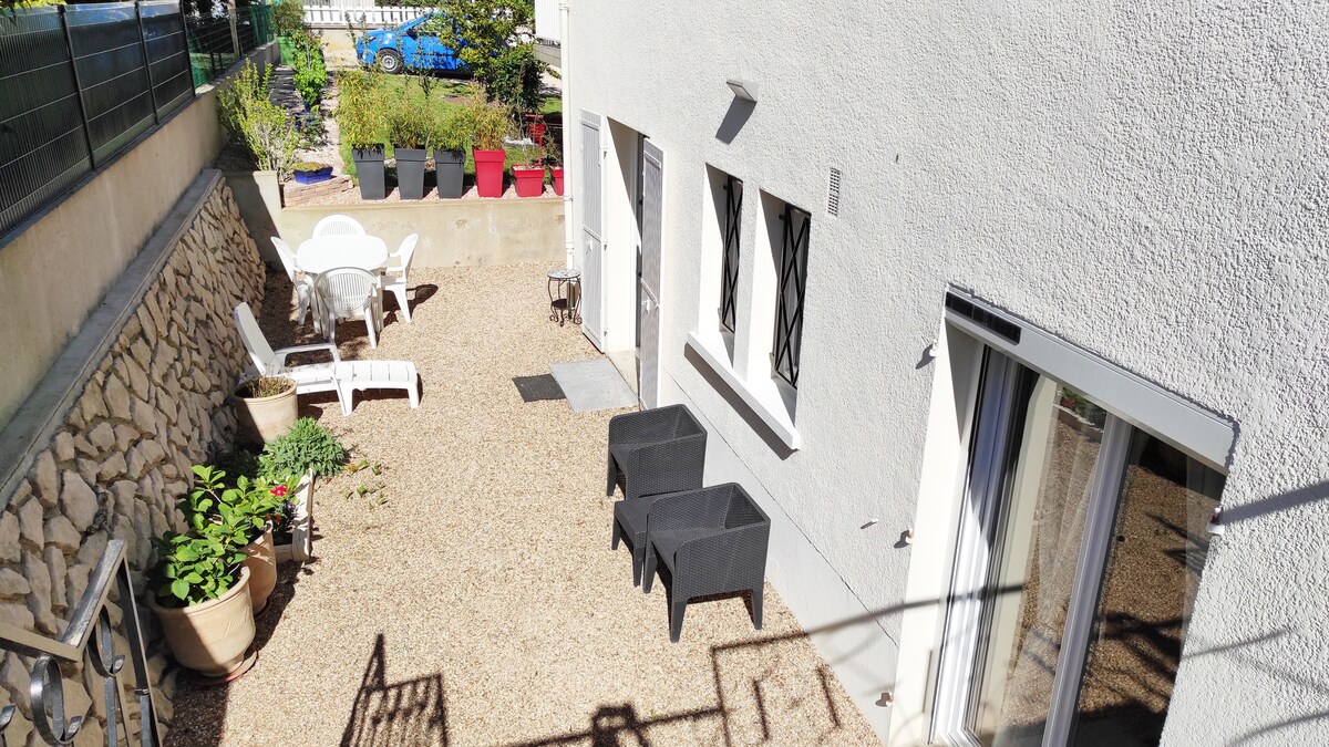 住居は袋小路にあり、中庭に駐車することができます。市内中心部とポアティエ大学病院から10分、フチュロスコープから15分です。 近くにはお店があり、市場までは車で5分、毎週日曜日には徒歩で20分です。バス停は50メートル先です。 2台のテレビが備わった宿泊施設で、そのうち1台は寝室に設置されています。 インターネットWi-Fi、1階建ての家。 滞在をスムーズにするために必要なすべての設備が揃っています。それでは、イレーヌ