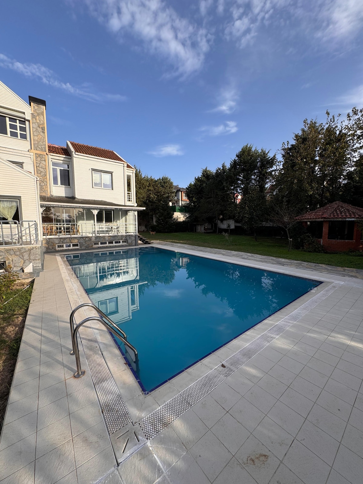 ビュユクチェクメジェ・イスタンブール・テペケント・サイト 専用の2000平方メートルの囲い付き庭園。ヴィラの内部面積は 400 平方メートルです。注:2026年3月に庭に芝生を植え付けました。4月の庭園は写真と異なりますが、5月には新しい芝生の種が庭全体に生い茂る予定です! 6 部屋、大広間 2 室、スポーツルームとビリヤードルーム 1 室。屋内外のテラスエリア。 72平方メートルの専用屋外プール。 徒歩圏内(10分)に自然の池、散策エリアがあります。 キイ・マリーナまで15分、TÜYAPまで20分です。
