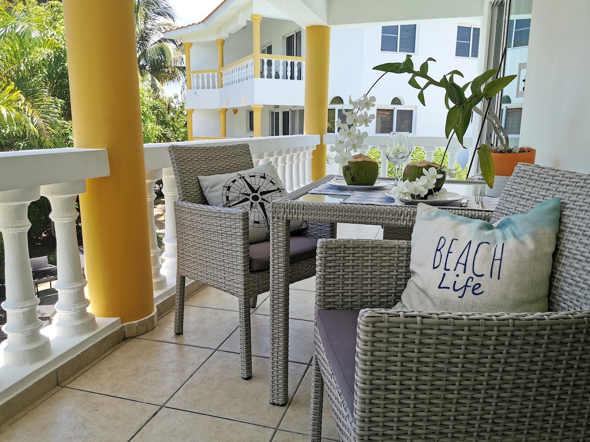 豪華なビーチフロントのゲート付きコミュニティ、インフィニティブルーにある美しく明るい1ベッドルームのコンドミニアム。 この複合施設は、ソスアのすべてのレストラン、バー、ショップまで徒歩圏内にありますが、熱帯の楽園のような雰囲気があります。 このユニットには、リビングルームとベッドルームの両方にエアコンがあります。 キングサイズベッド、50インチスマートテレビ、ケーブルテレビ、Wi-Fi。 リクエストに応じてボトル入り飲料水をご用意しております。 天井が高く、明るい装飾で、風通しの良いビーチのような感じです。 屋外テーブルと椅子があるバルコニーからは庭の景色が見えます。 電気は別途料金がかかります。