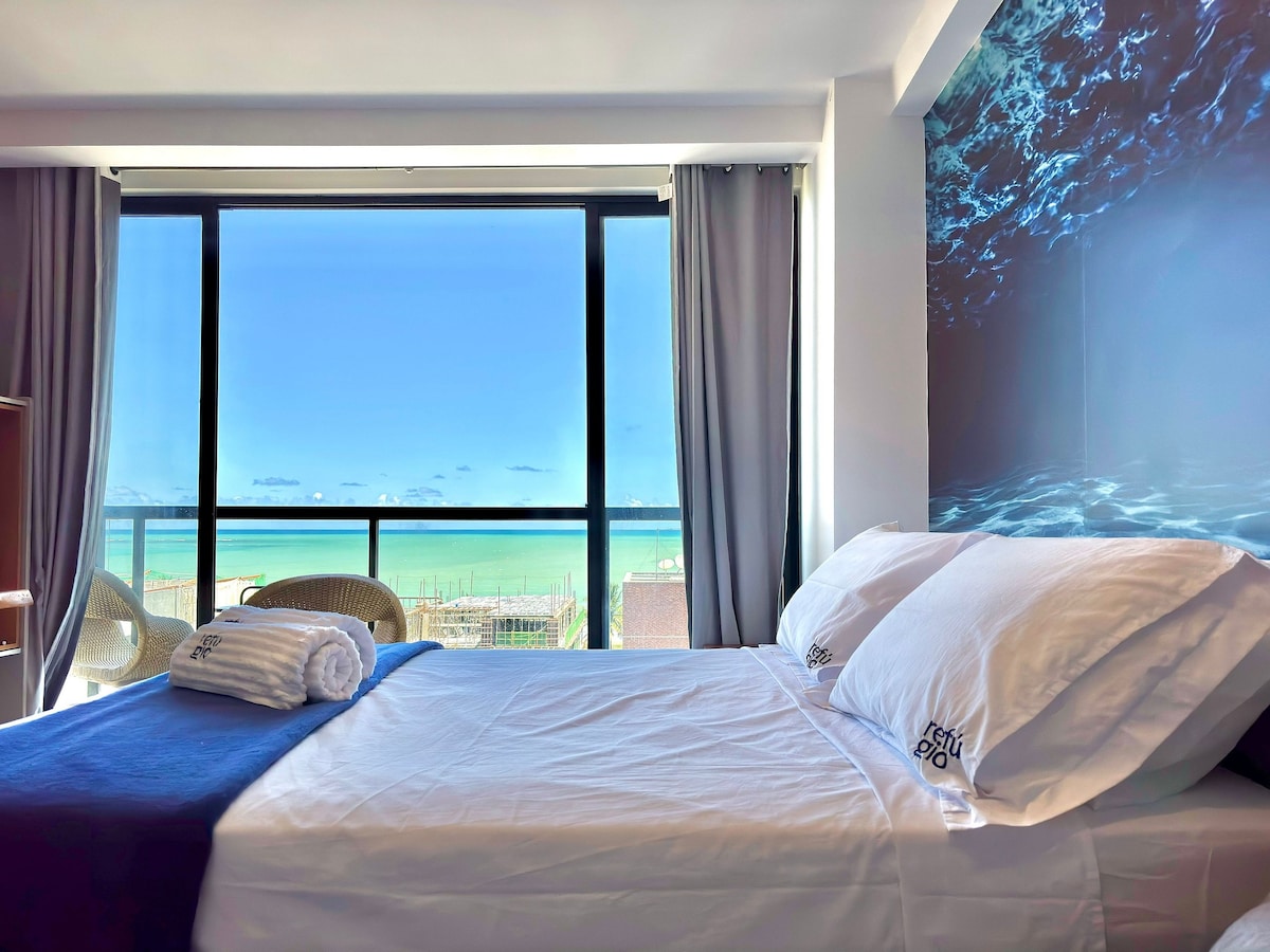 ジョアン・ペソアの砂浜にある地中海スタイルのスタジオ。 ギリシャの魅力をパライバ海岸に持ち込む白と青の装飾と素朴なディテールを備えた、海を望むコンパクトで快適なスタジオは、カップルや一人旅の旅行者に最適です。快適さと最高のロケーションを兼ね備えた、魅力的な隠れ家で、リラックスするのに最適です。近くには素晴らしいレストランや観光スポットがあります。設備も充実しており、プール、ジム、ランドリー、駐車場などのレジャー施設もあります。