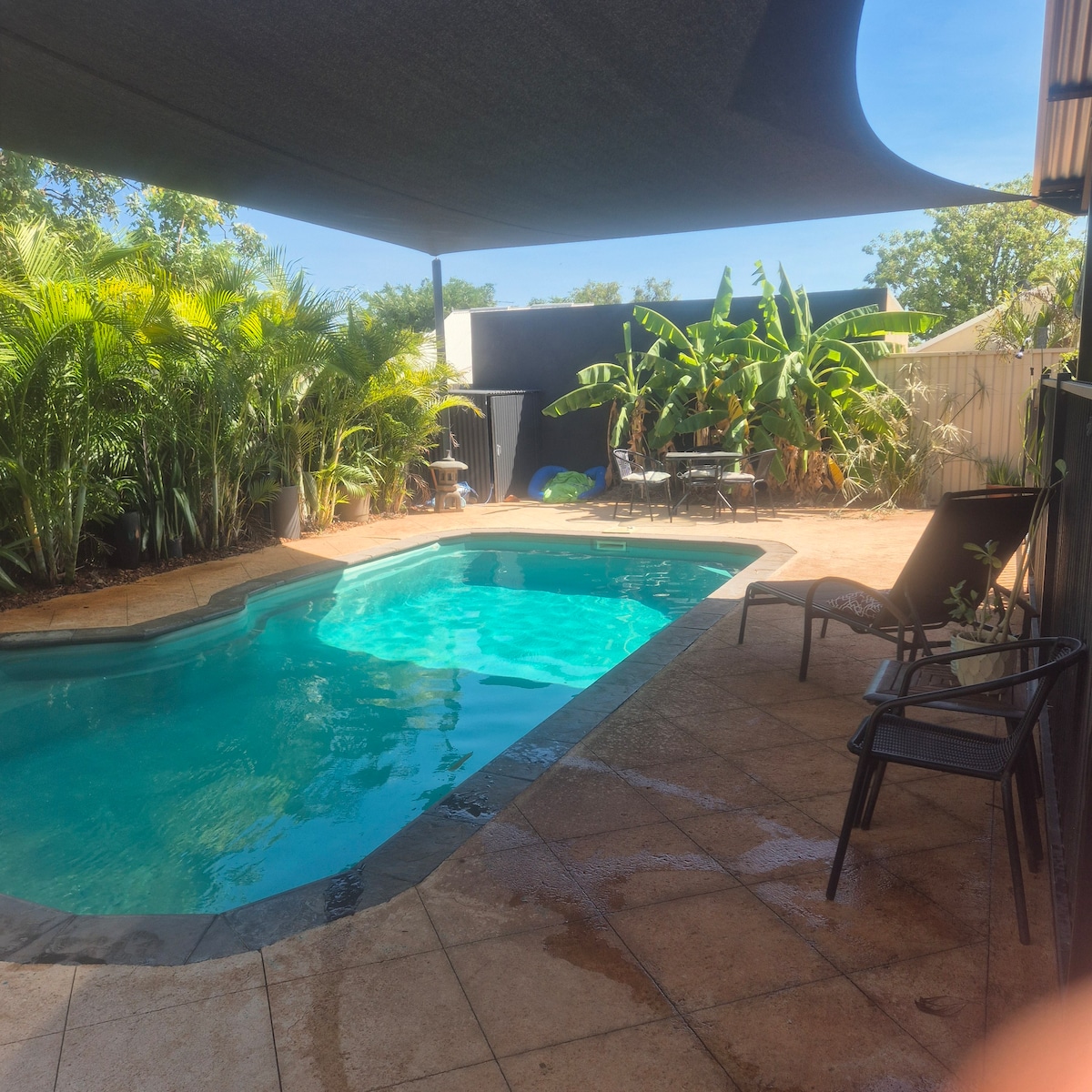 ケーブルビーチから徒歩10分のところにある、あなただけのオアシスを発見してください。 完全に自炊式のワンルームアパートメントには、クイーンベッド、設備の整ったキッチン、専用バスルーム、洗濯機が備わっています。 専用テレビでNetflixをご覧いただき、快適におくつろぎください。 専用プールと屋外スペースをお楽しみください。 車やトレーラー用の広いフェンス付き駐車場。 カップルやおひとり様の旅行に最適です。 快適さと利便性が完璧に融合した宿泊先を今すぐご予約ください