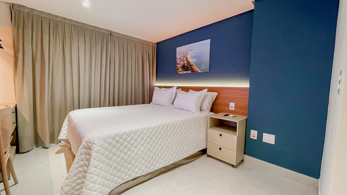 Studio diferenciado com 31 m², acima do padrão do condomínio, totalmente projetado com iluminação planejada e espaços bem aproveitados. Possui varanda com vista definitiva para o mar, a poucos metros da praia de Cabo Branco. Acomoda até 4 hóspedes, com cama Queen e sofá-cama, além de ar-condicionado e Wi-Fi. Condomínio estilo resort com piscina, recepção 24h, café da manhã opcional e garagem rotativa, em excelente localização.