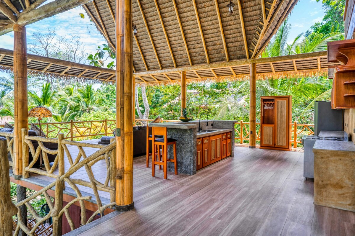 ユニークなトロピカルバンガロー〜眺め〜ビーチまで徒歩!