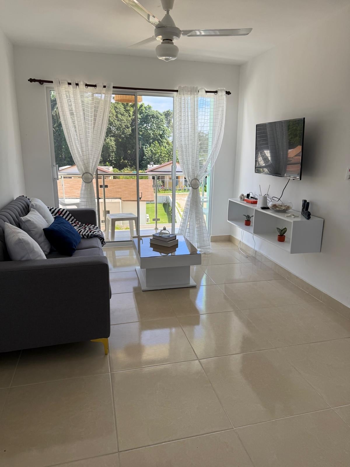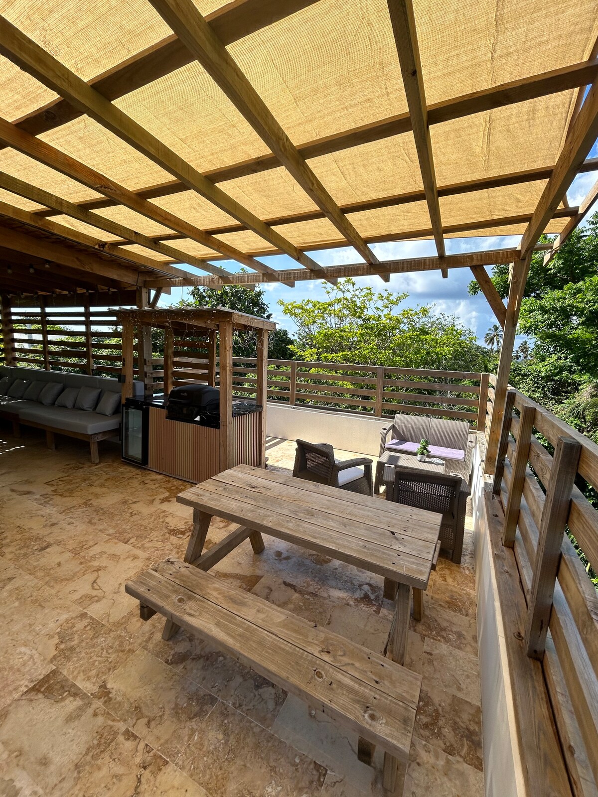 Welcome and relax in our brand new, stylish apartment, located in the Quiet Residential María, in the hart of Cabrera. Apartment is the top floor of the property. Kitchen is fully equipped. Full size Washer and Dryer in the Laundry Room. Two Bedrooms with queen size bed, Smart TV and Air Conditioner. Two full bath, one next to each bedroom. Dining, Kitchen and Living area has also an air conditioner. Seating space in the front deck and in the patio area. Free Private Parking off the street.
