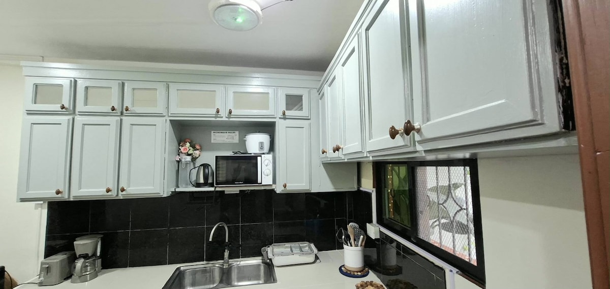 Welcome to this spacious and comfortable Airbnb home located near Bacolod's renowned Kyle's Eatery. With its high ceiling and cozy ambiance, this place offers plenty of extra room for a truly relaxing stay. Perfect for business travelers or families, this intimate accommodation features a staircase design, on a double height space complemented high window that fills the airy space with natural light. The classic furniture with accent mosaic wall adds a touch of elegance to the ambiance.