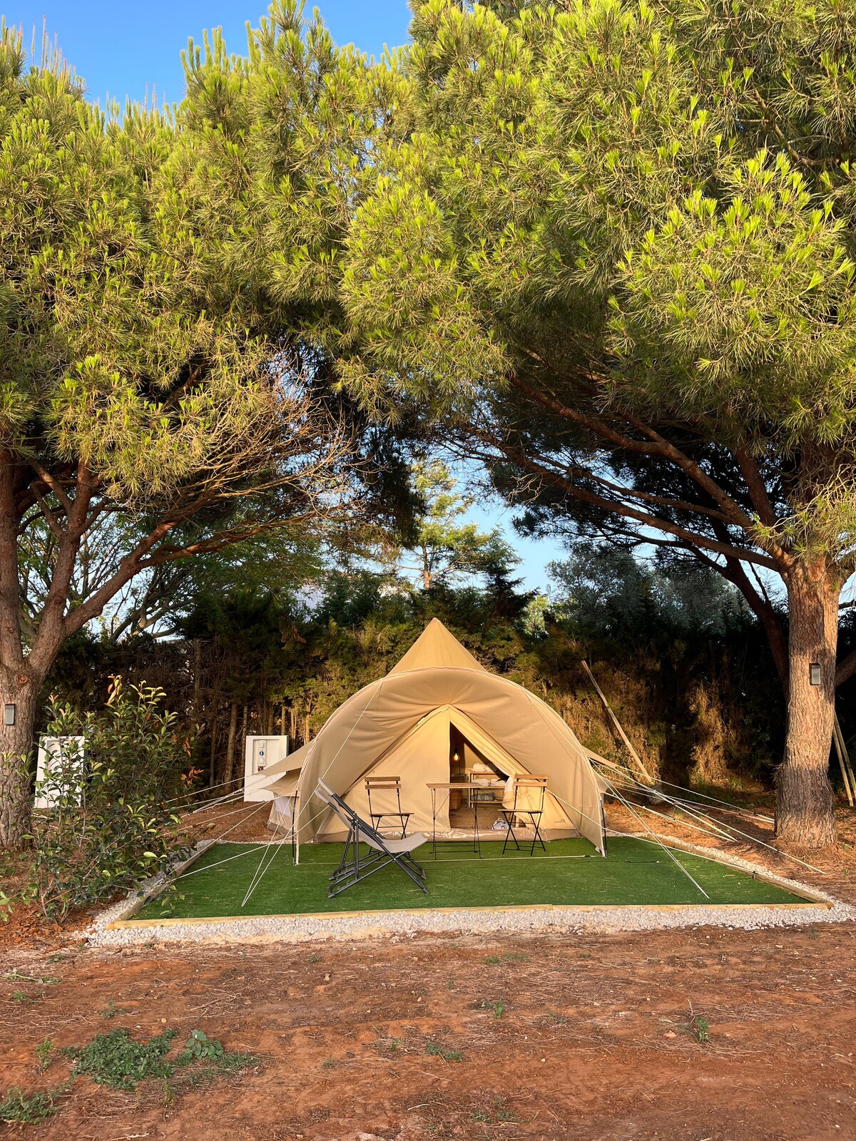 Vuelve a conectar con la naturaleza con esta escapada inolvidable. Disponemos de 4 tiendas amplias de algodón acogedoras y confortables. Se ubican en una bonita finca en un entorno natural a 5 minutos andando de la playa. Las tiendas comparten un espacio exterior común equipado con cocina completa, 2 baños comunes, comedor exterior y una pequeña piscina. Un espacio de tranquilidad para disfrutar de unas vacaciones diferentes lejos del estrés.