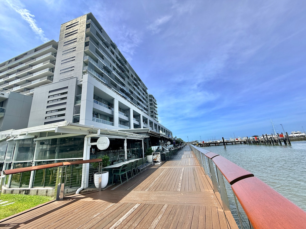 Positioned above the Cairns Reef Terminal within the Waterfront Precinct, this spacious ninth-floor one-bedroom apartment offers an ideal base for exploring tropical North Queensland. The complex includes a pool, sauna, BBQ facilities, and outdoor dining areas, with Cairns’ best restaurants and cafés just downstairs on the boardwalk. After a day exploring the Reef or Rainforest, relax on the balcony with a drink and take in wide-open views across Trinity Inlet and the hinterland beyond.