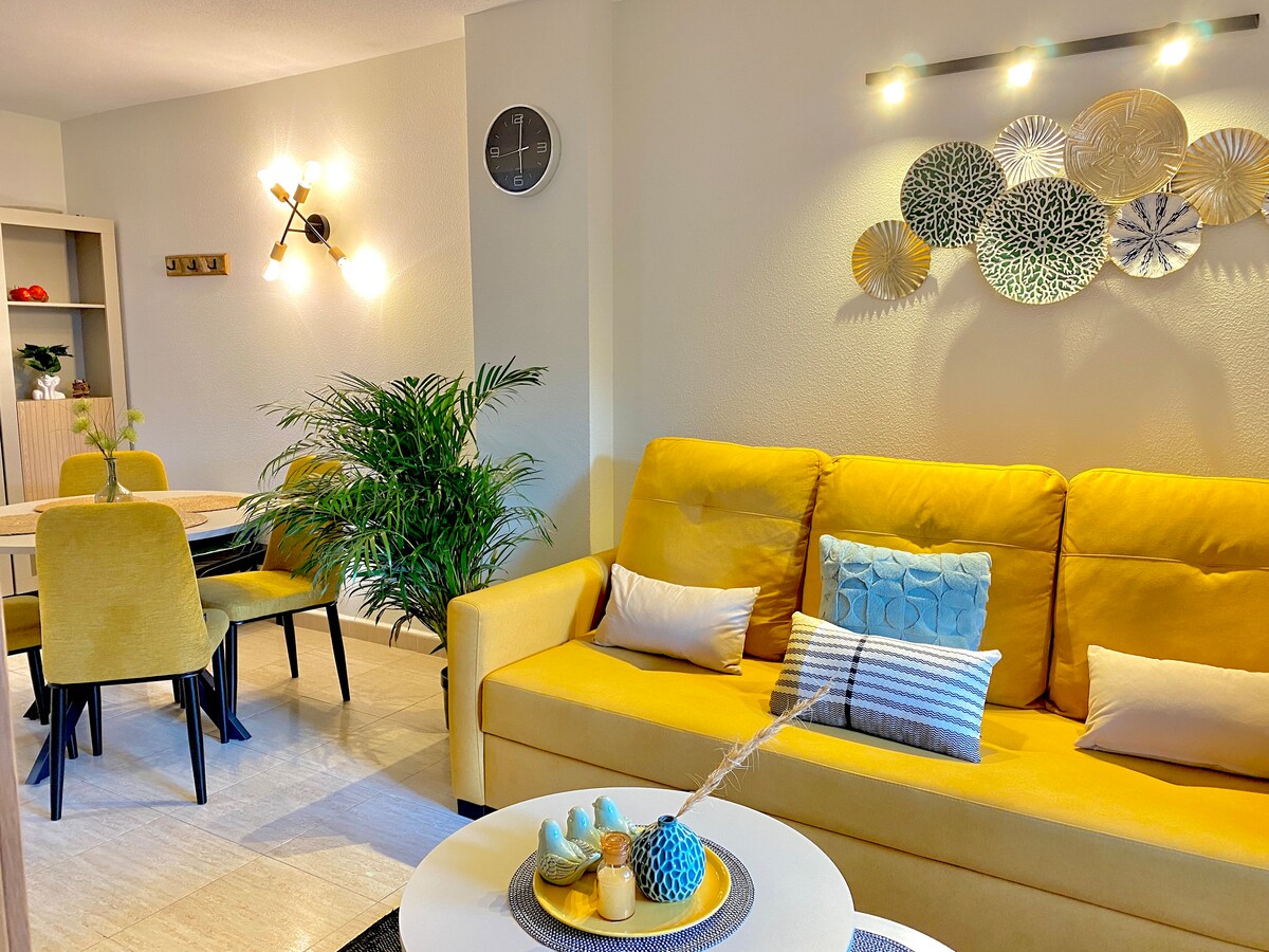 カラ・デ・フィネストラット(ベニドルム)のビーチから75メートルの壮大な景色を望むアパート。WiFi 600 Mb。すべての部屋にエアコン。プール、ジム、サウナ、周辺にはレストラン、ショップ、スーパー、薬局、マーケット(火曜日と土曜日)があります。バスとタクシー。キッチン:洗濯機、オーブン、食器洗い機、電子レンジ、コーヒーメーカー、ミキサー、アイロン、調理器具一式、ウェルカムキット(白ワインと赤ワインのボトル)。シャワートレイ付きバスルーム、アクセシビリティ対応、ドライヤー、アメニティ。ベビーベッド/ベビーチェアは無料です。